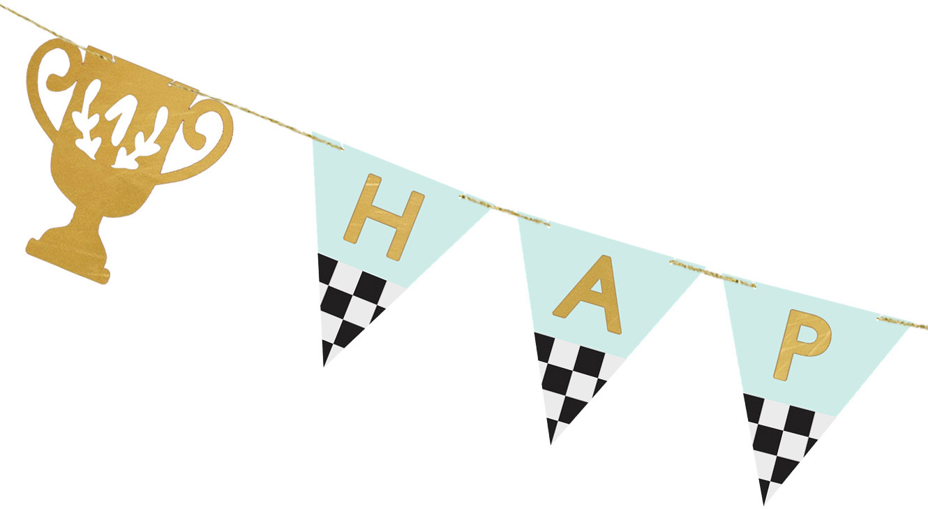 Der farbenfrohe Pokal-Banner mit der Aufschrift „Happy Birthday“ bringt sofort Feierlaune in jeden Raum und verwandelt die Partyfläche in eine tolle Geburtstagsszene. Das Banner besteht aus Papier im lebendigen Farbenmix, hat eine Höhe von etwa 13 cm und wird auf einer rund 3 m langen Schnur befestigt. Es kommt als Produkt zur Selbstmontage und bietet dadurch die Möglichkeit, den Partybereich ganz nach Wunsch zu gestalten.