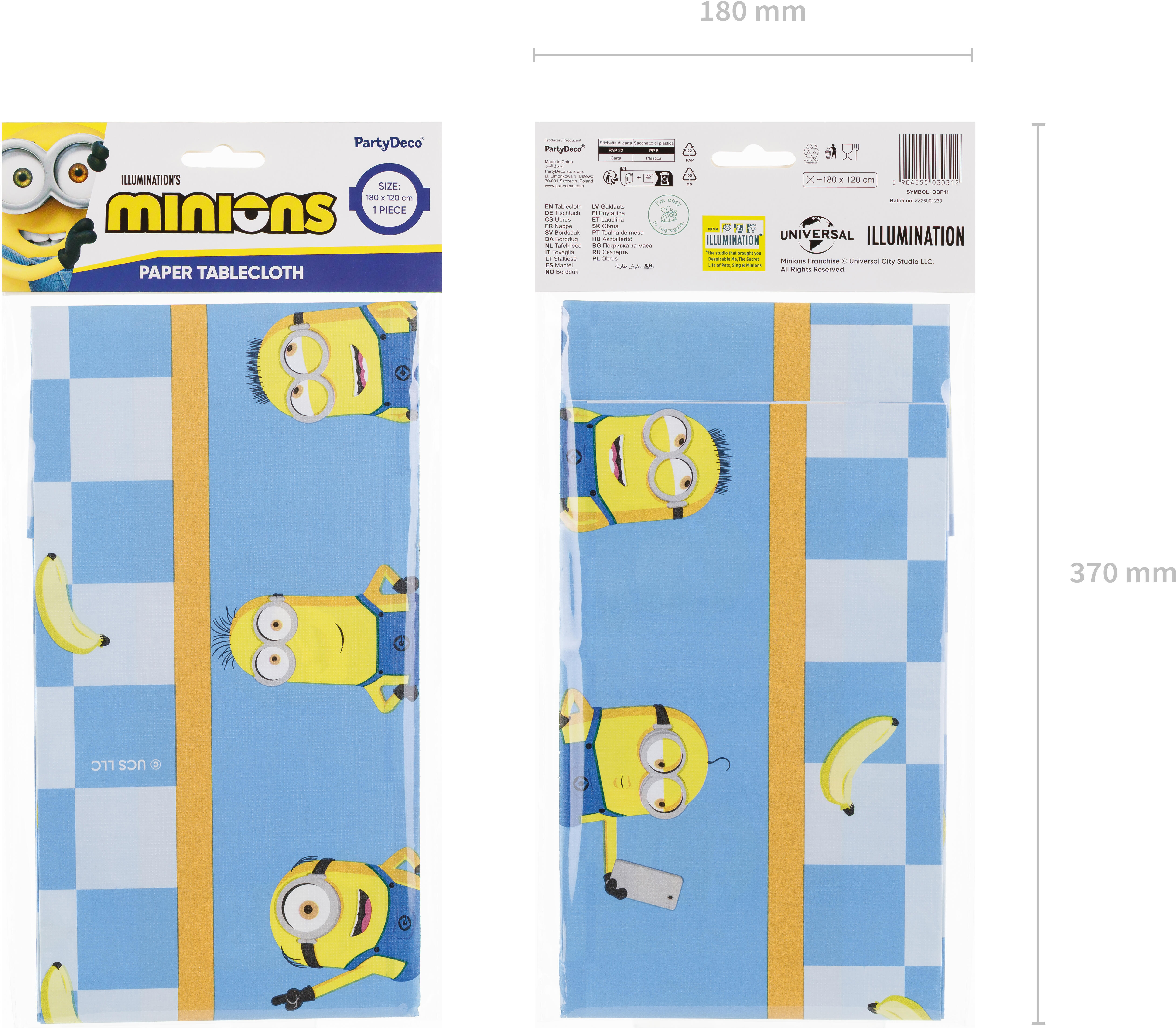 Nappe en papier Minions en bleu-jaune. Taille dépliée 180 x 120 cm.
