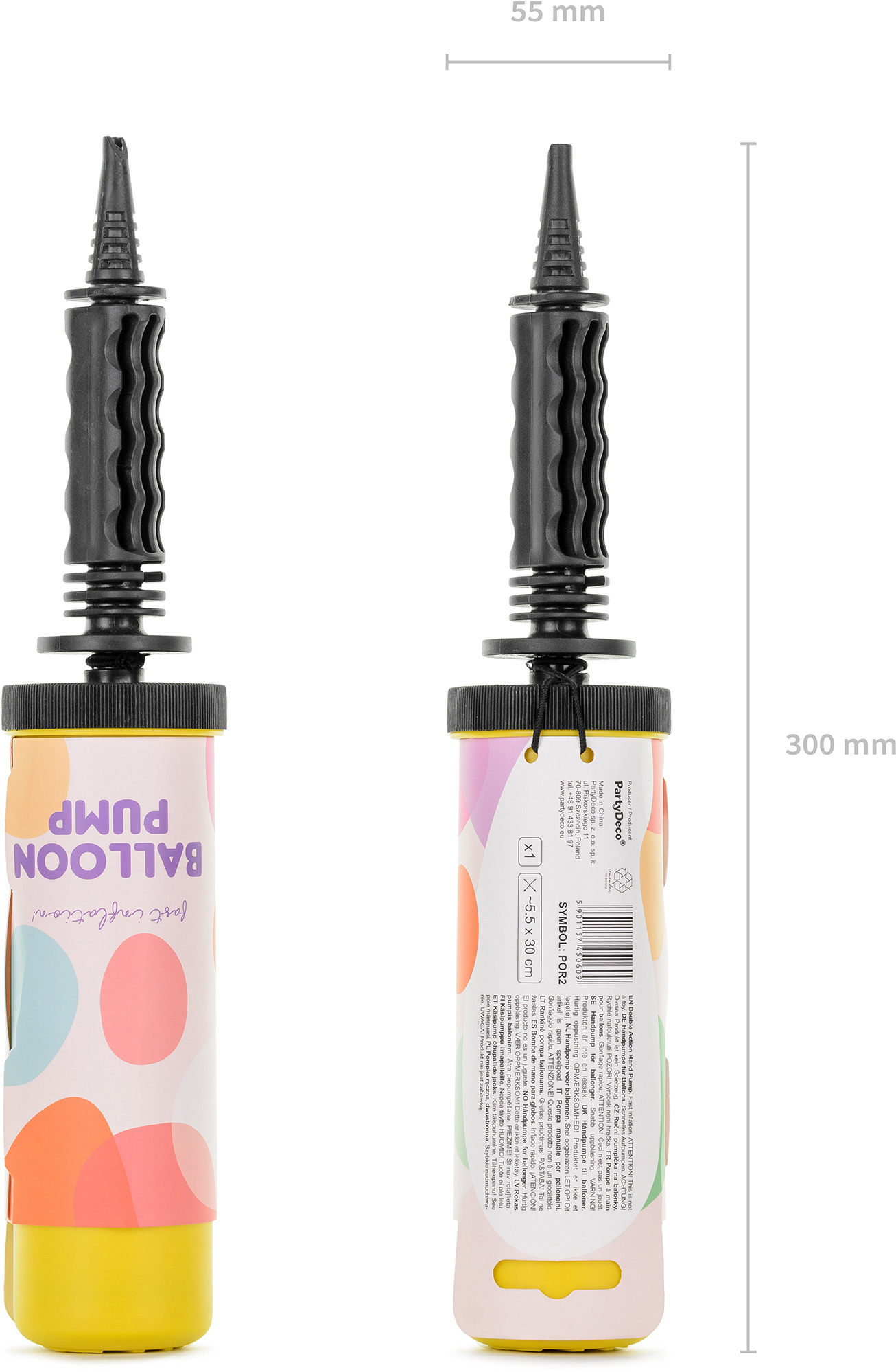Mit der doppelseitigen Handpumpe von Partydeco wird das Aufblasen von Ballons und kleinen Luftartikeln zum Kinderspiel. Praktisch, kompakt und einfach zu bedienen, eignet sich die Pumpe ideal für Geburtstagsfeiern, Partys oder andere festliche Anlässe. Abmessung: 5.5 x 30 cm