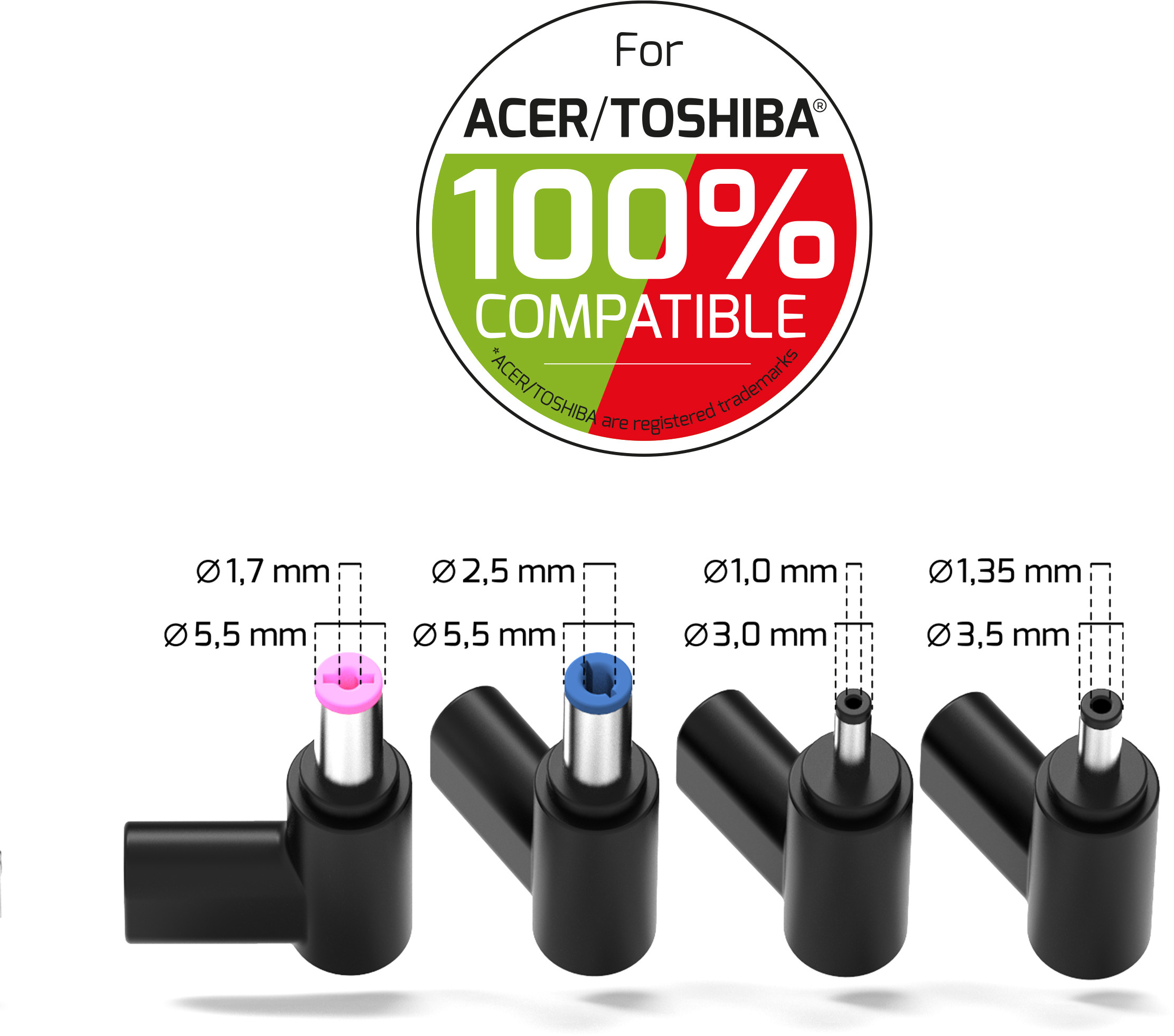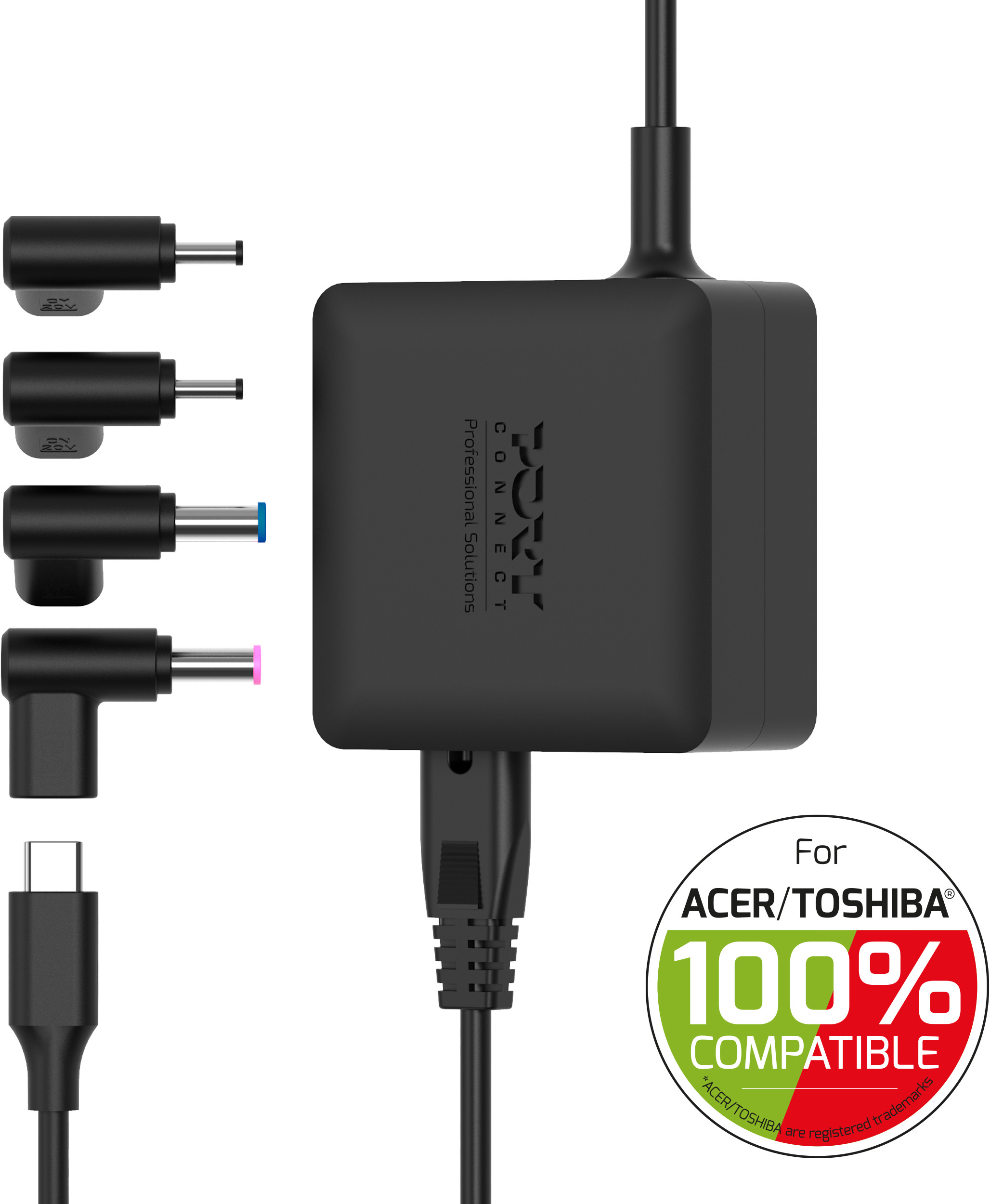 - Chargeur de rechange compact : une alternative pratique aux adaptateurs secteur ACER®/TOSHIBA® d'origine 4 embouts de prise spécifiques ACER®/TOSHIBA® ACER® inclus : Garantit une large compatibilité entre les différentes générations d'ordinateurs portables