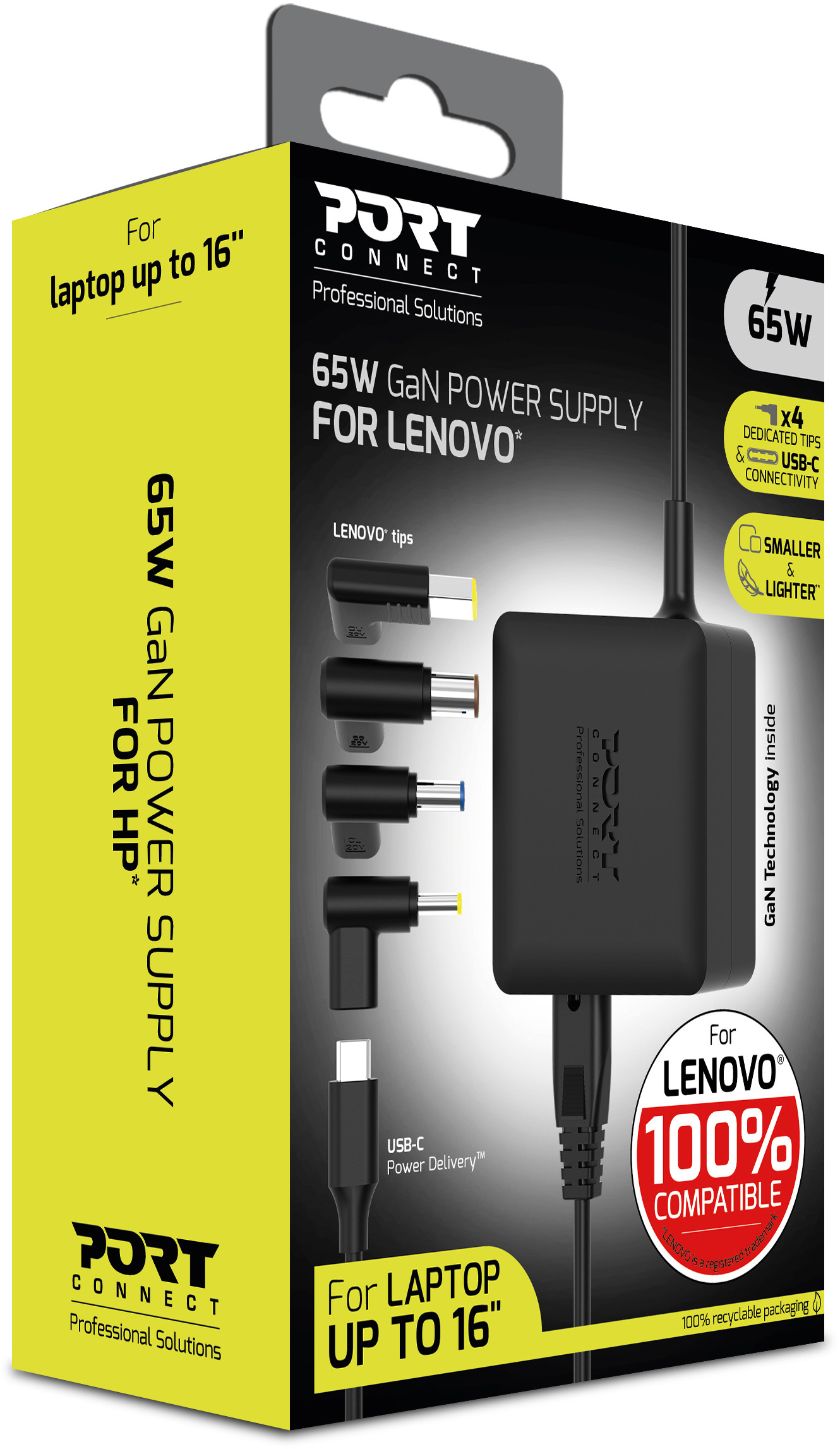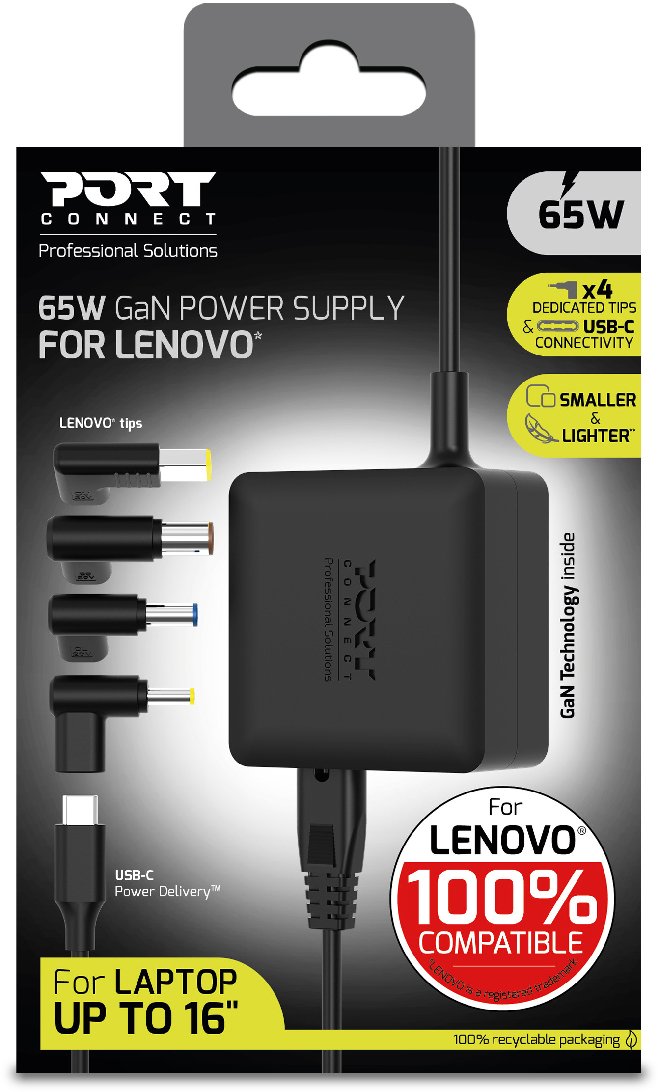 - Puissance de sortie de 65 W : charge rapide et fiable pour les ordinateurs portables LENOVO® jusqu'à 16 pouces et les appareils USB-C compatibles