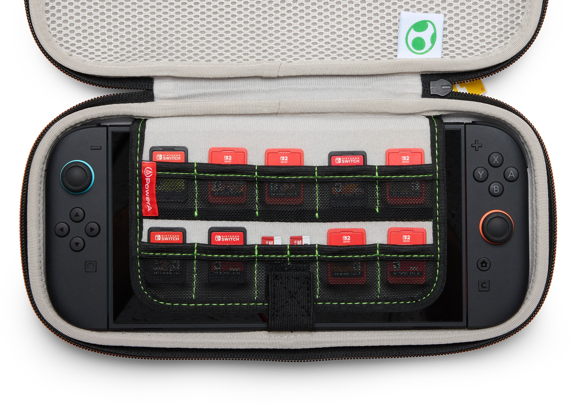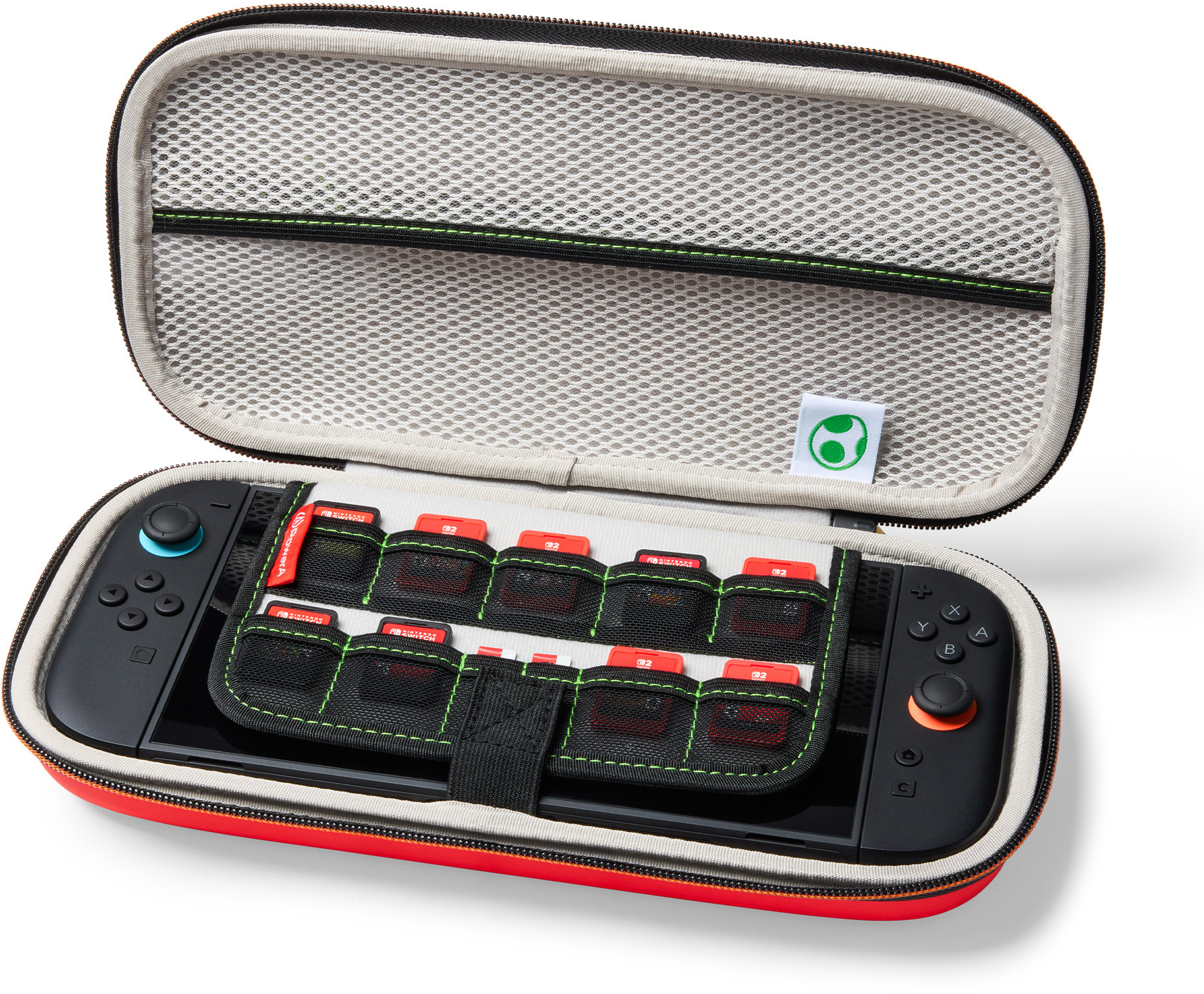 Nimm deine Nintendo Switch 2 mit auf all deine Abenteuer – mit der offiziell lizenzierten Schutzhülle von PowerA. Diese Hülle bietet eine robuste Außenschale, einen gummierten Griff, einen praktischen Reißverschluss und eine geformte Innenausstattung mit weichem Plüschfutter, um deine Nintendo Switch 2 unterwegs optimal zu schützen. Im integrierten Spielkartenhalter lassen sich 9 Spielkarten und 2 microSD Express-Karten sicher verstauen. Die Netztasche eignet sich perfekt für kleineres Zubehör, und der integrierte Spielständer ermöglicht dir bequemes Spielen im Tischmodus. Befindet sich die Konsole in der Hülle, dient der Spielständer gleichzeitig als gepolsterter Displayschutz. Kompatibel mit Nintendo Switch und Nintendo Switch – OLED-Modell. 2 Jahre eingeschränkte Garantie.