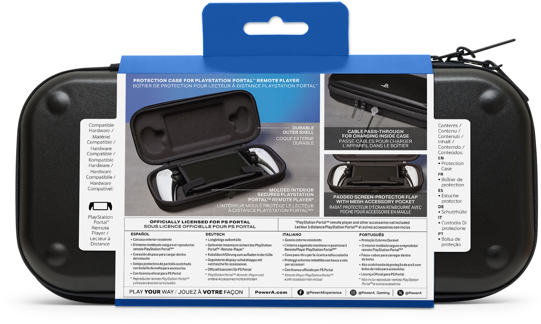 Die offiziell lizenzierte PowerA Schutzhülle für den PlayStation Portal Remote Player ist ideal für Gaming unterwegs. Sie kombiniert eine robuste Außenschale mit einer geformten Innenausstattung und bietet so zuverlässigen Schutz für Reisen und den Alltag. Dank der Kabeldurchführung kann der PS Portal auch bei geschlossener Hülle geladen werden. Im Inneren schützt eine integrierte, gepolsterte Displayschutzklappe vor Kratzern, und eine Netztasche bietet Platz für kleines Zubehör. Ein Tragegriff ermöglicht bequemes Tragen, während der umlaufende Reißverschluss mit zwei Zippern und die flache Form einen einfachen Zugriff gewährleisten. 2 Jahre eingeschränkte Garantie.