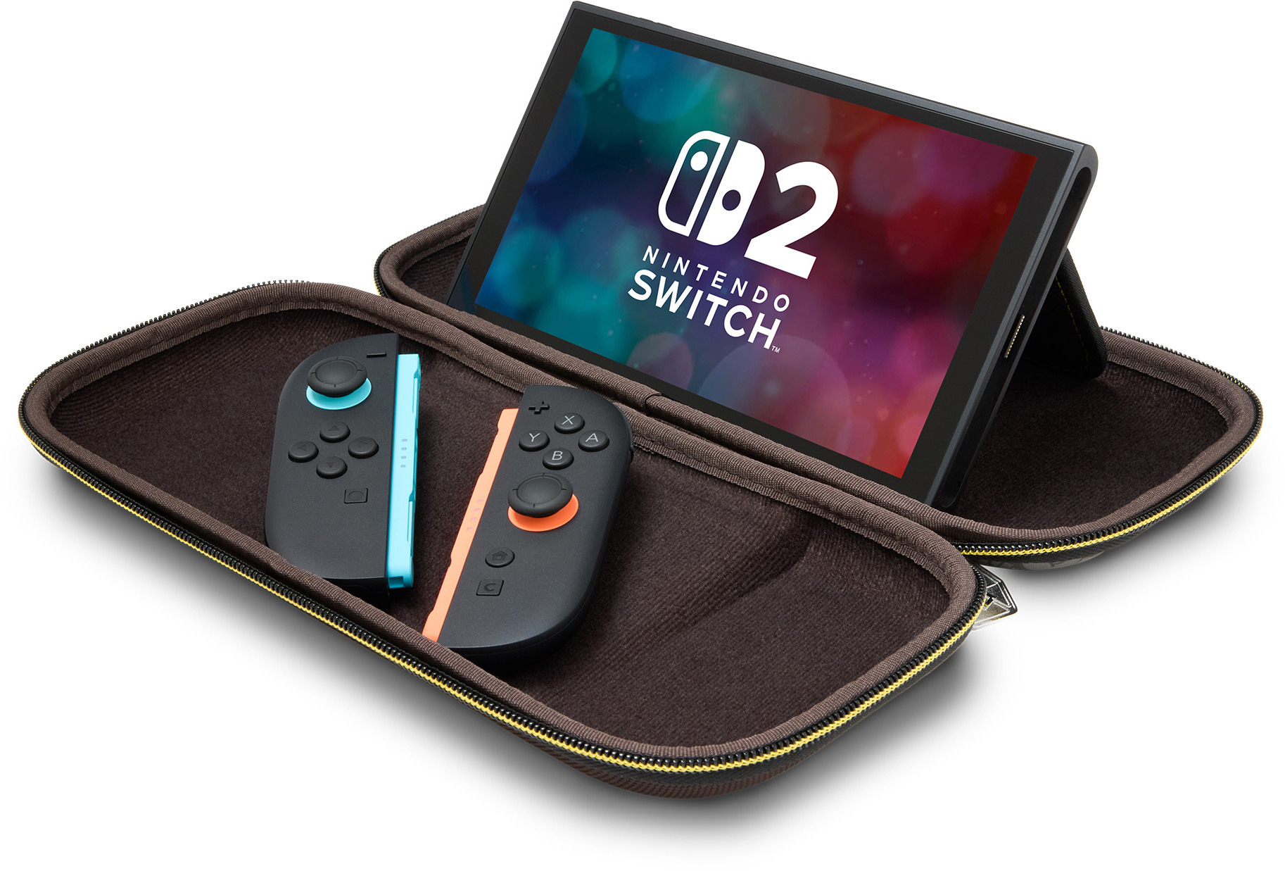 Nimm deine Nintendo Switch 2 überallhin mit – mit dieser offiziell lizenzierten Schutzhülle von PowerA. Innen findest du ein weiches Stofffutter und einen integrierten Spielständer mit Stauraum für bis zu zehn Spielkarten. Befindet sich die Konsole in der Hülle, dient der integrierte Spielständer gleichzeitig als gepolsterter Displayschutz und bewahrt so deinen Bildschirm vor Kratzern. Mit dieser praktischen Hülle kannst du deine Nintendo Switch 2 überall und jederzeit spielen.
