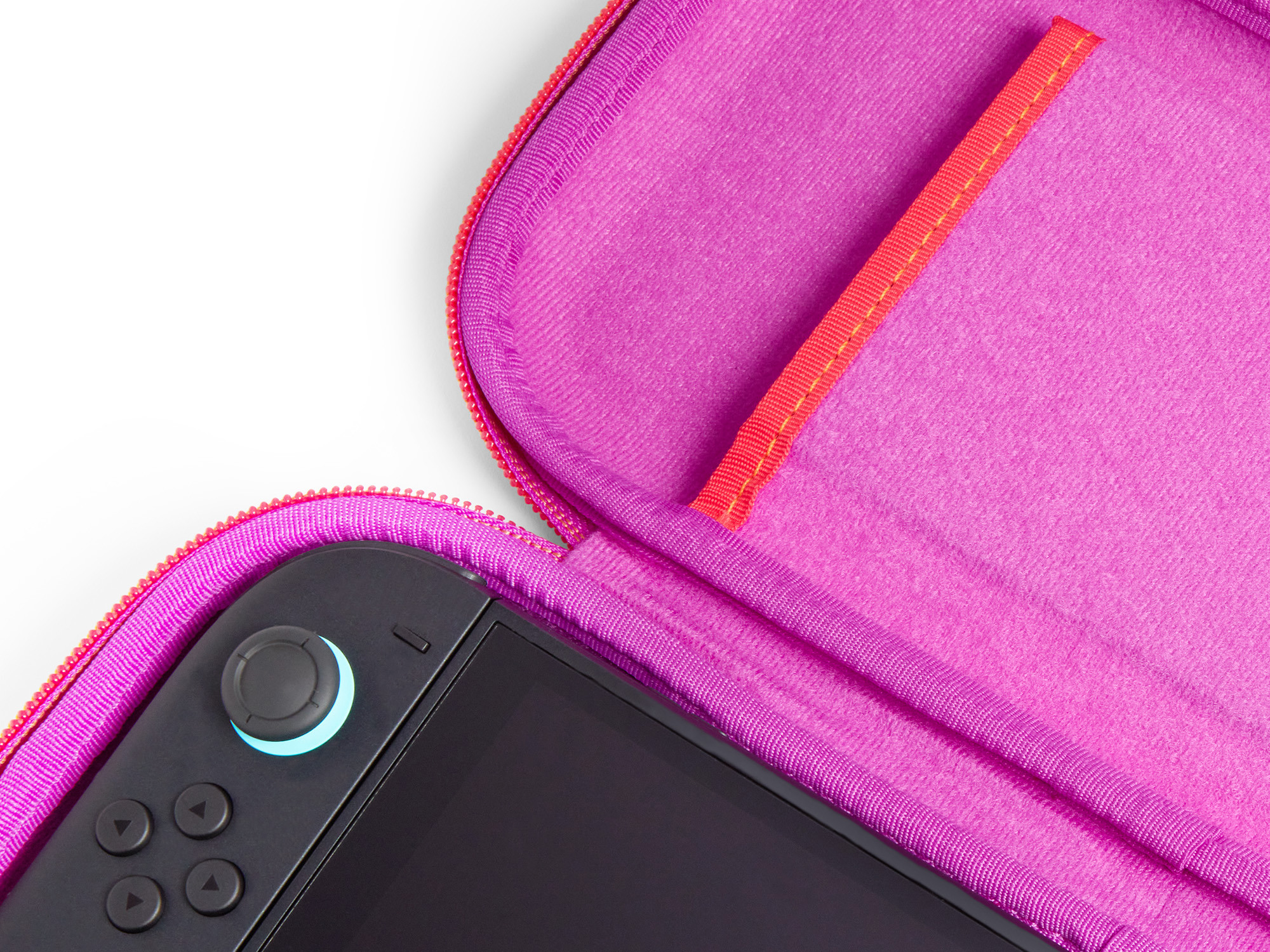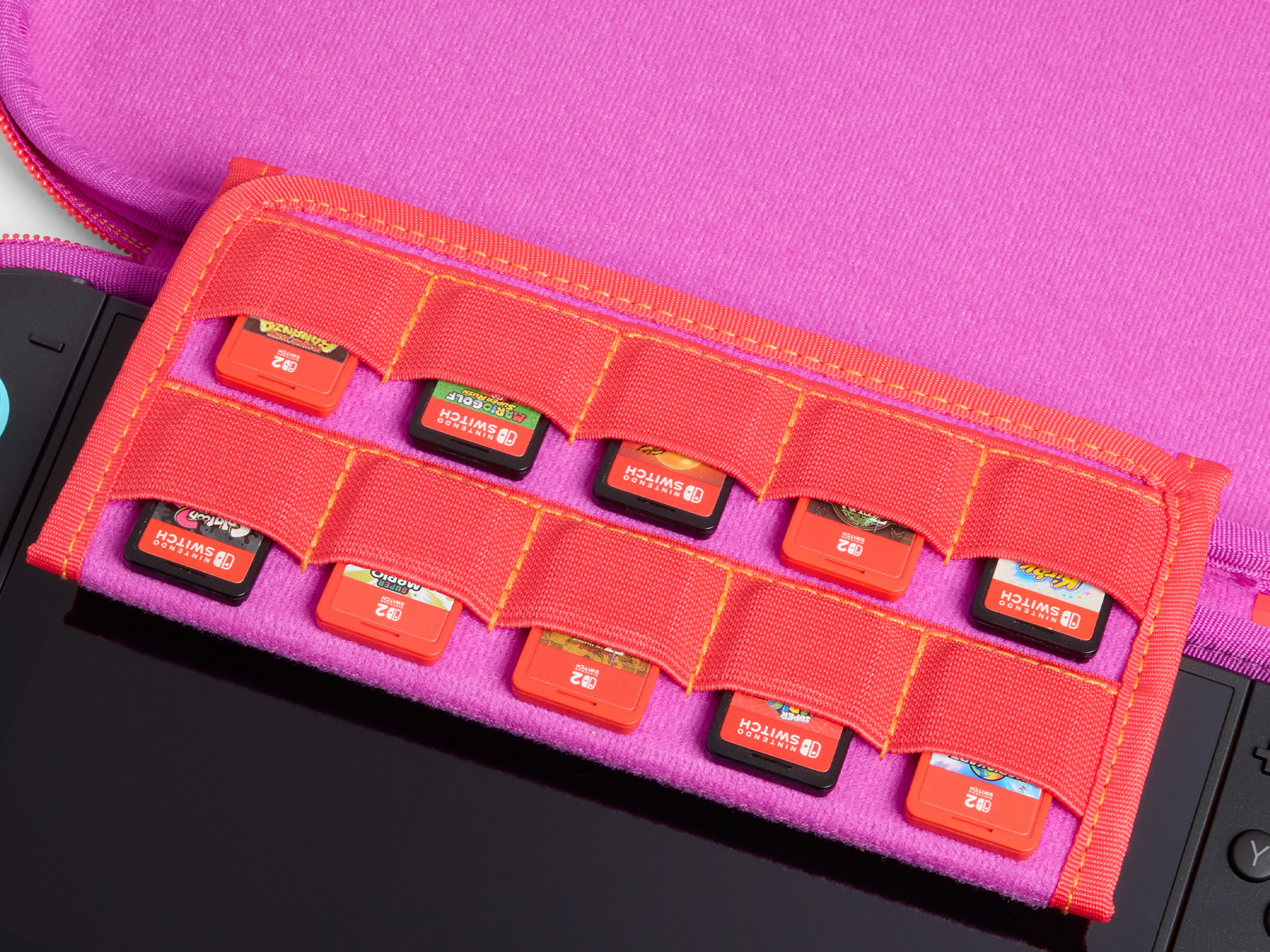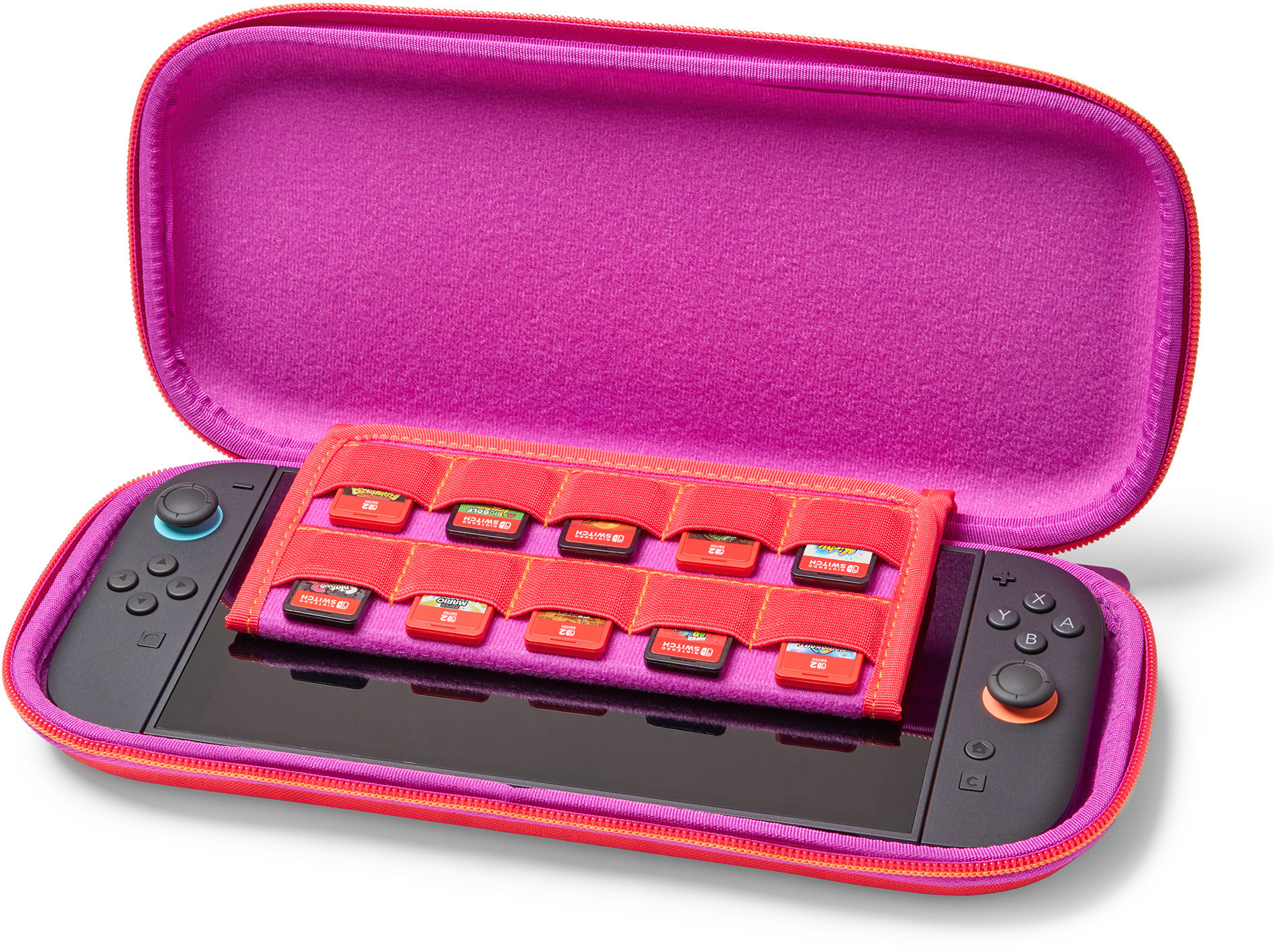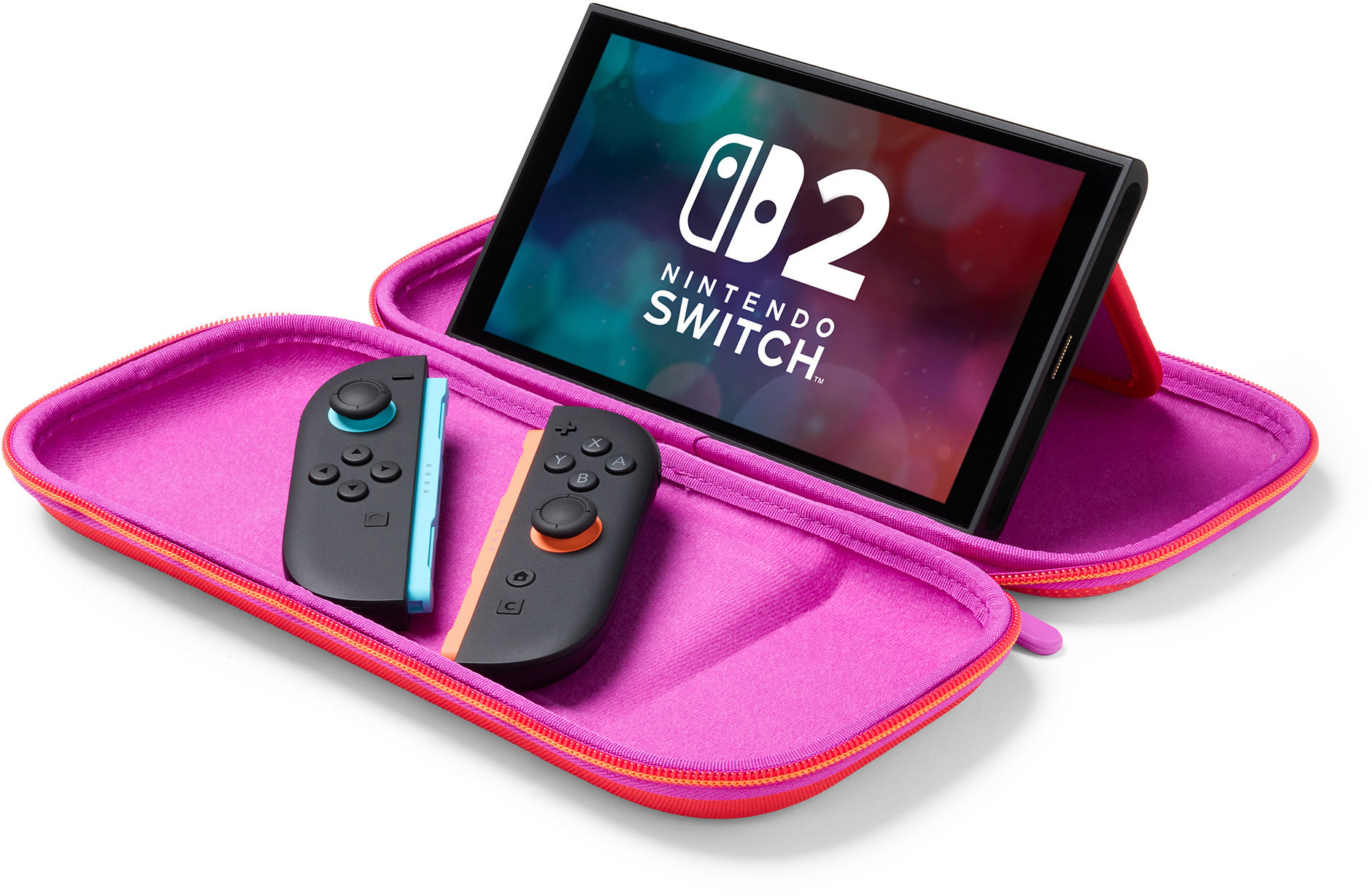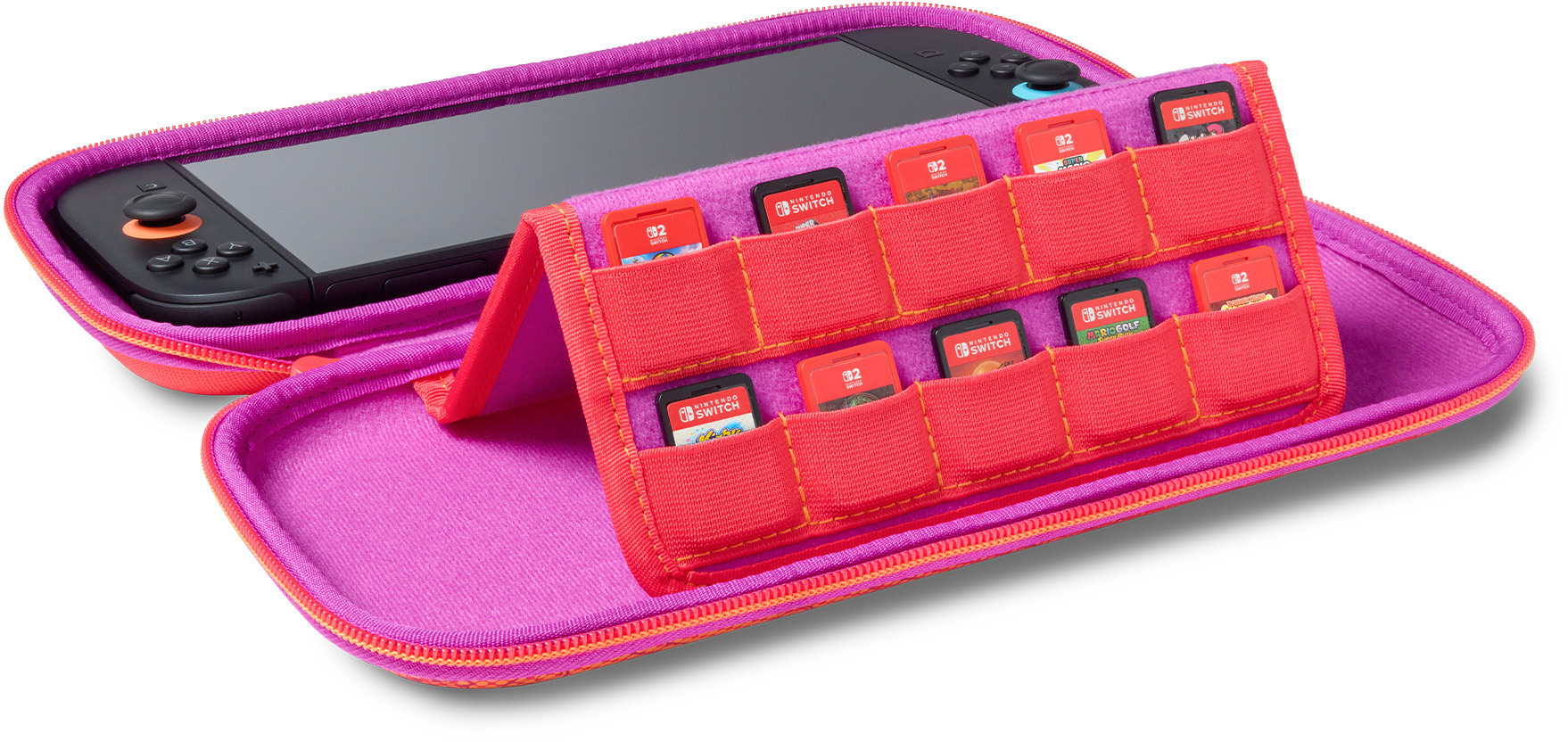 Cet étui fin sous licence officielle de PowerA te permet d'emporter ta Nintendo Switch 2 partout avec toi. À l'intérieur, tu trouveras une doublure en tissu doux et un support intégré pouvant accueillir jusqu'à dix cartes logicielles. Lorsque la console est rangée dans l'étui, le support intégré sert également de protection d'écran rembourrée pour éviter de rayer ton écran. Grâce à cet étui portable, tu peux continuer à t'amuser avec ta console Nintendo Switch 2 lorsque tu es en déplacement. N'importe où. À tout moment.