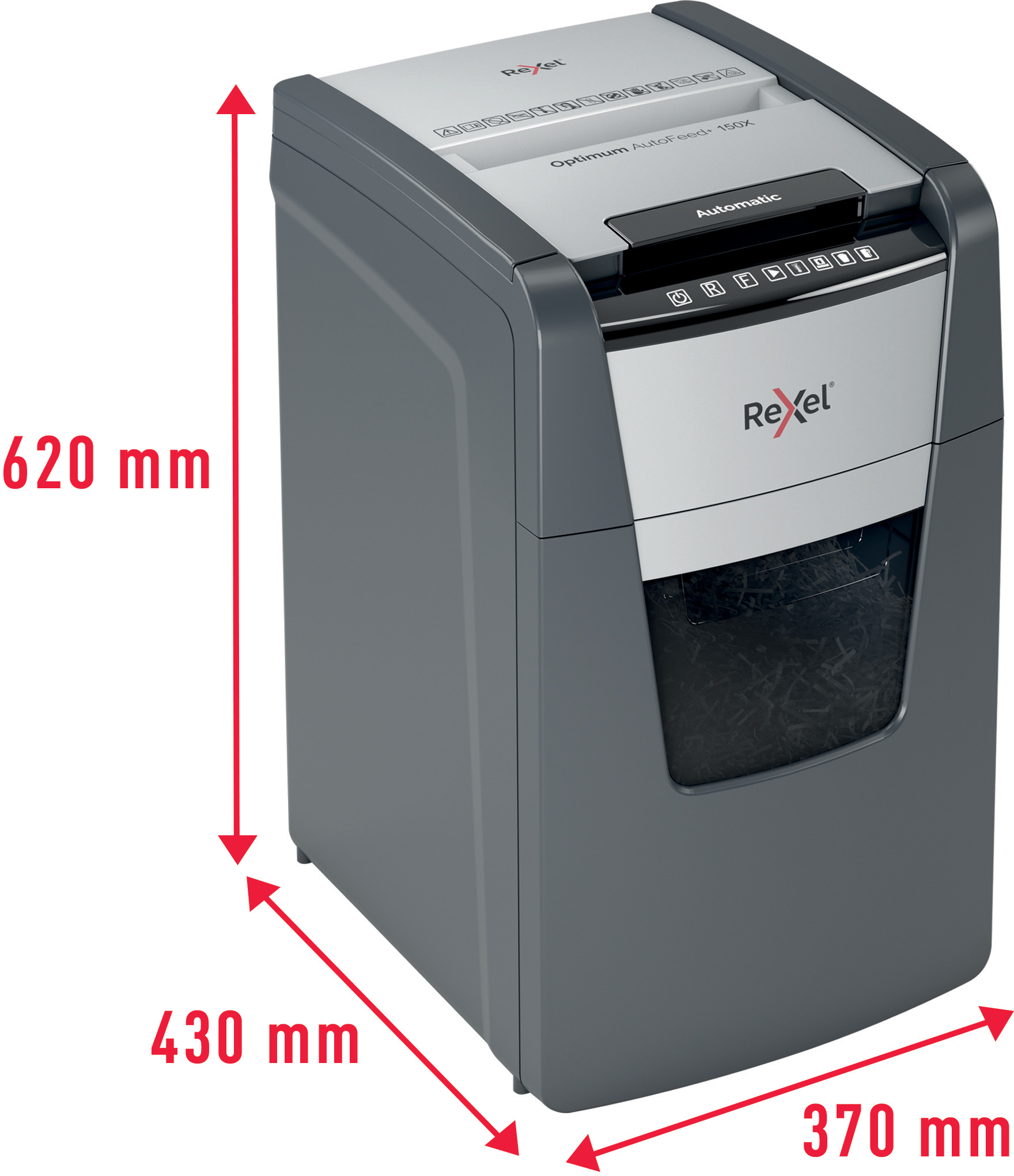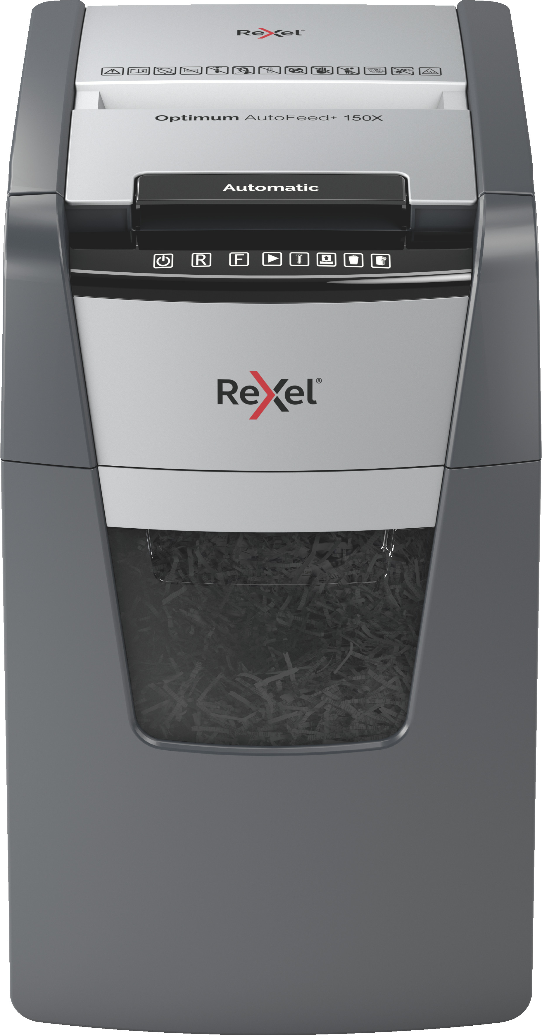 Optimum AutoFeed+ 150X Destructeur automatique de documents, 150 feuilles automatique, niveau de sécurité P4, coupe croisée, petit bureau, corbeille de 44 litres, 2020150XCH