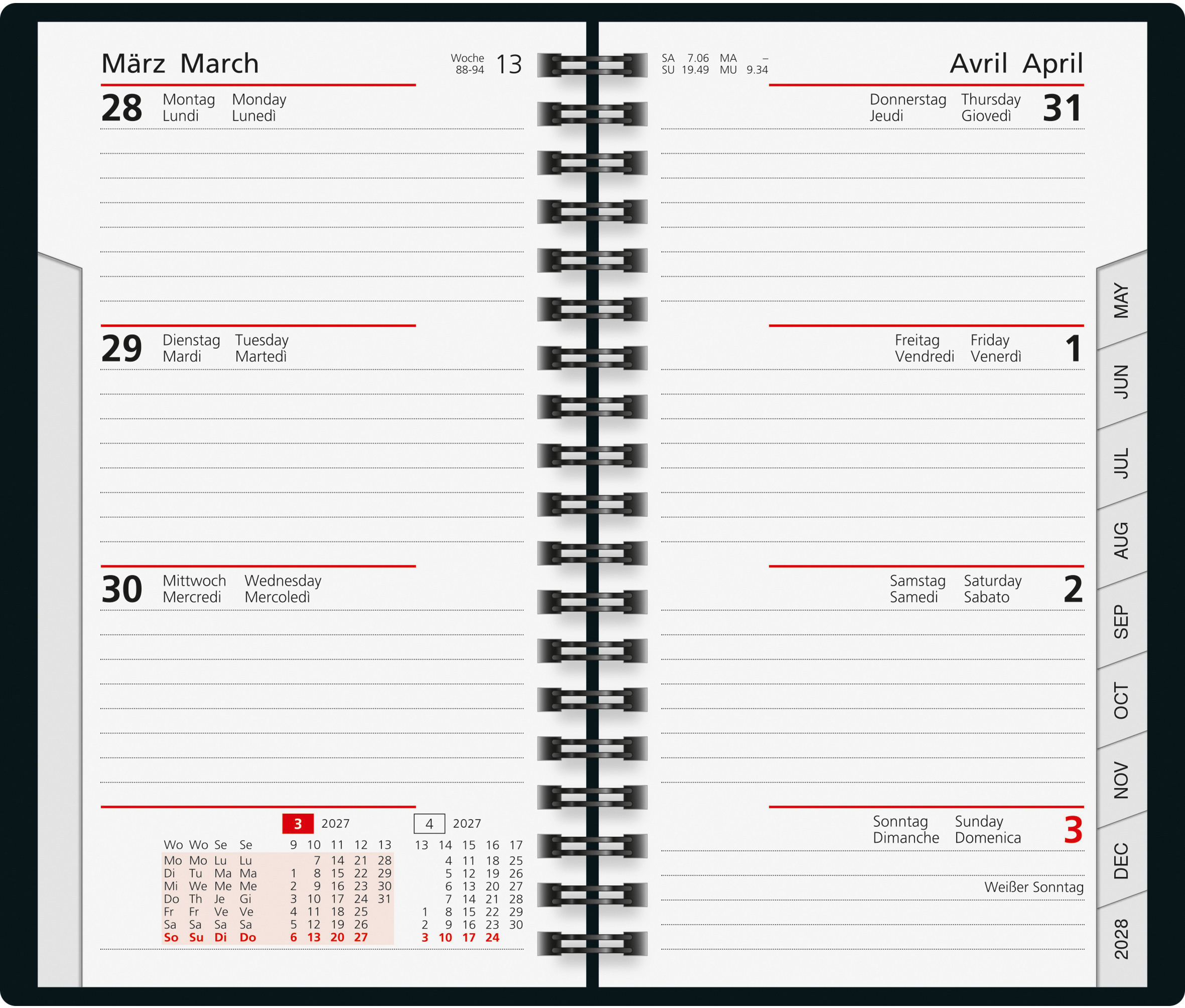 Un agenda de poche compact et international de RIDOIDÉ avec une reliure Wire-O noire. Parfait pour les déplacements.