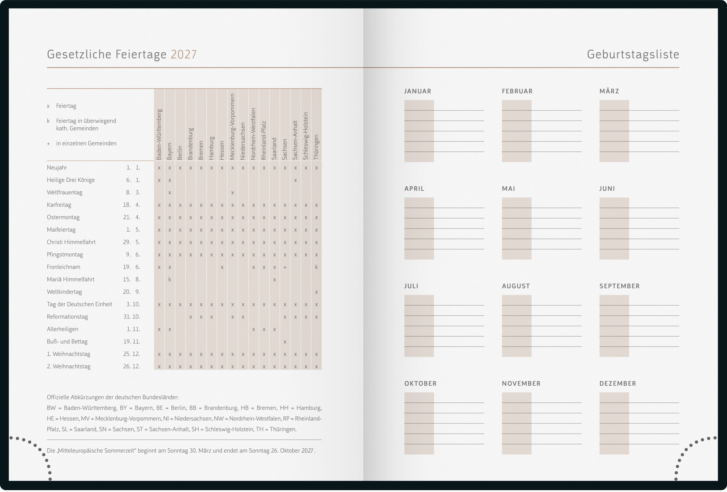RIDOIDE Cal. de table AC-Terminer 2027 7031702907.27 1S/2P noir ML 30.7x10.5cm
