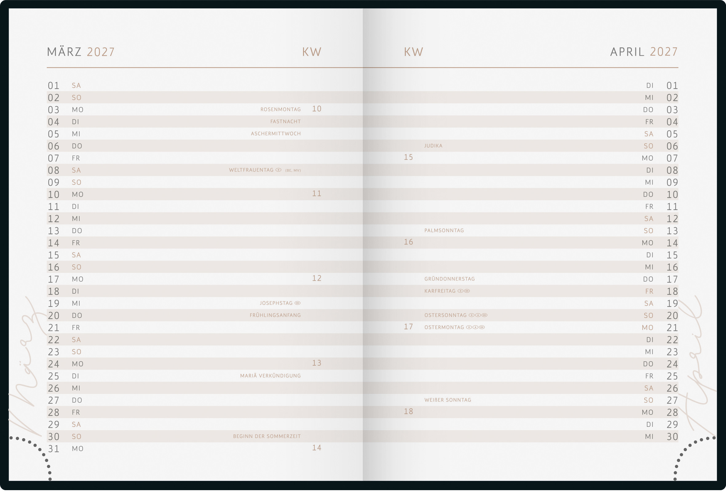 RIDOIDE Cal. de table Design Line 2027 7036311037.27 1S/2P Greeny AL 29.7x10.5cm