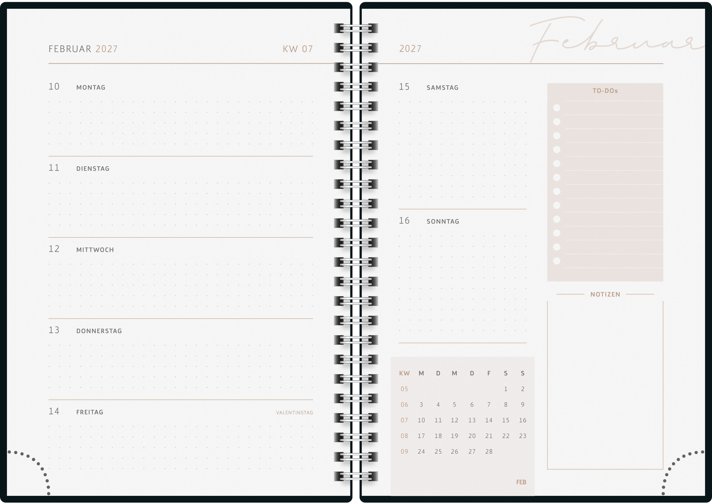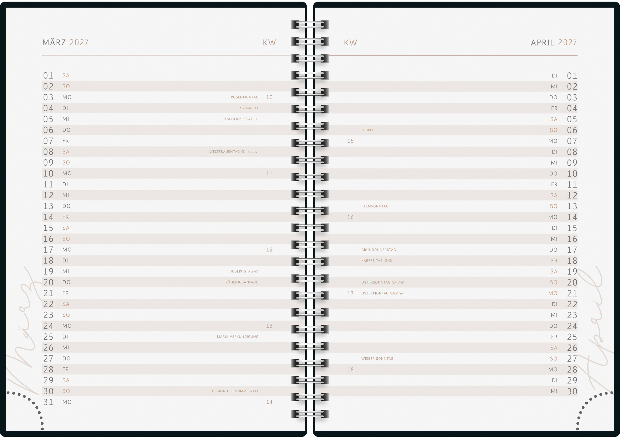 Gardez un œil sur vos rendez-vous avec ce calendrier Design Line de RIDOIDÉ. Format pratique, en langue allemande, avec 1 semaine / page. Planifiez votre année avec style et élégance !