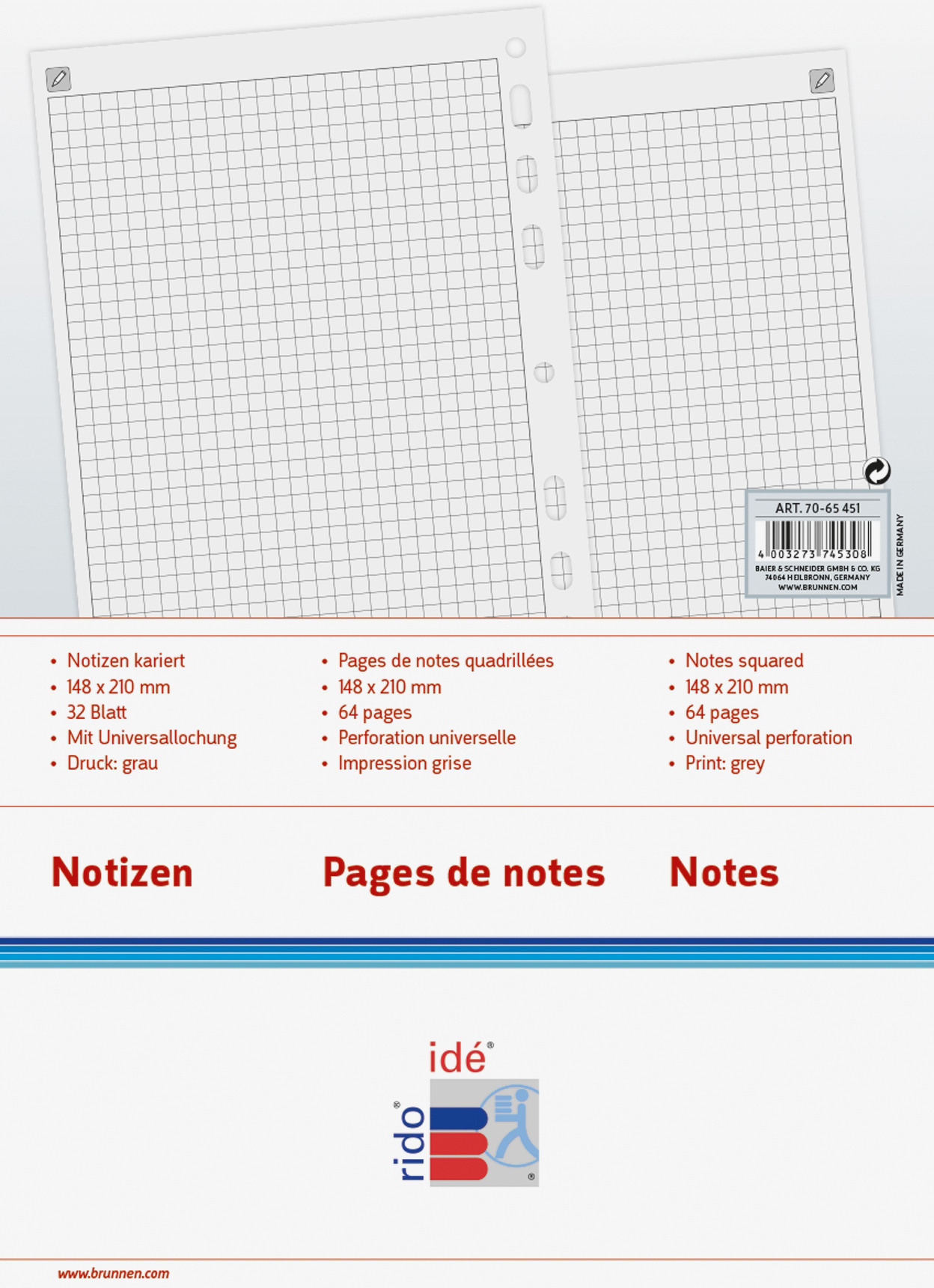 RIDOIDE Timing 1 notes quadrillés 7065451.27 32 feuilles 14.8x21cm
