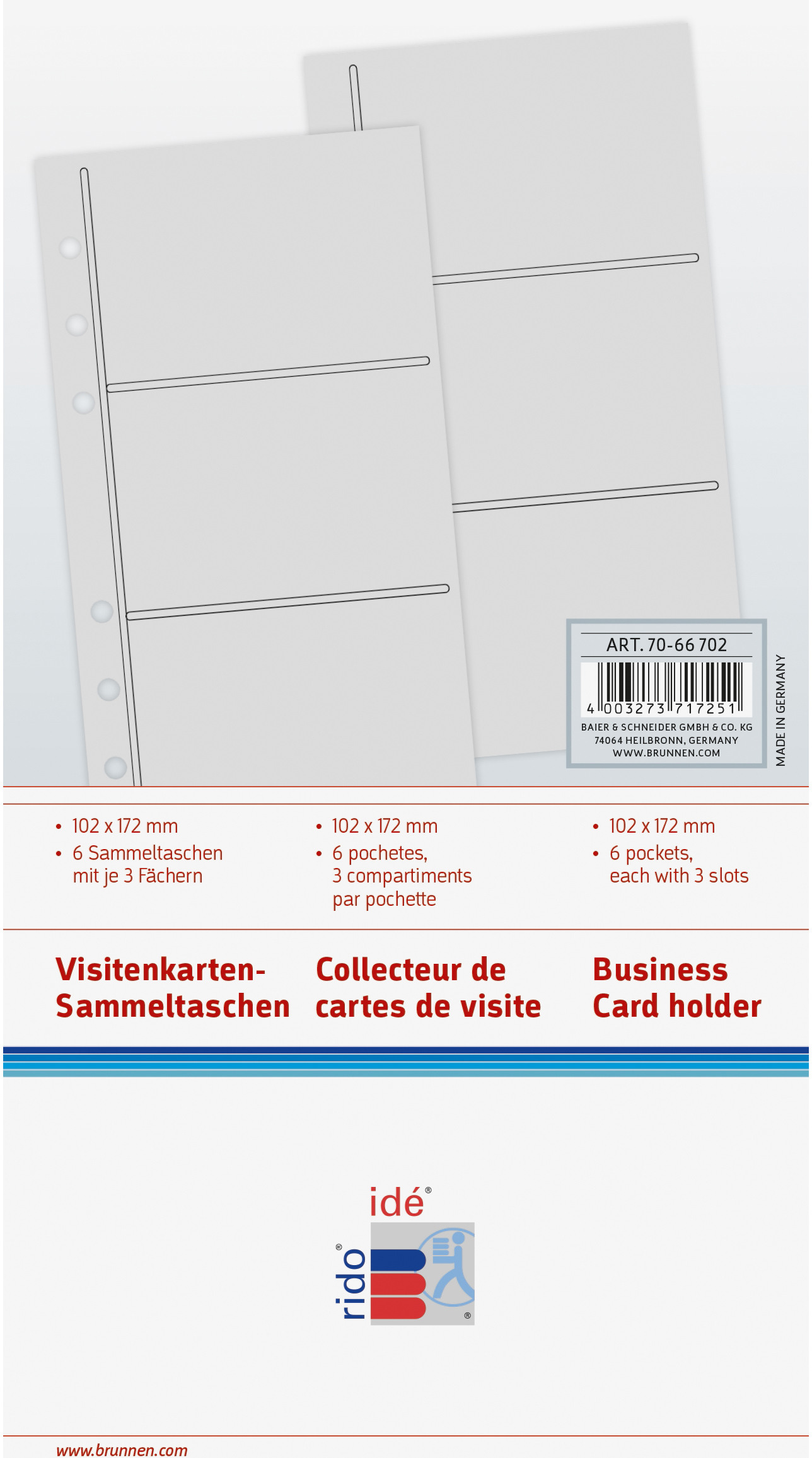La pochette pour cartes de visite RIDOIDÉ Timing 2 3 compartiments, paquet de 6 pièces