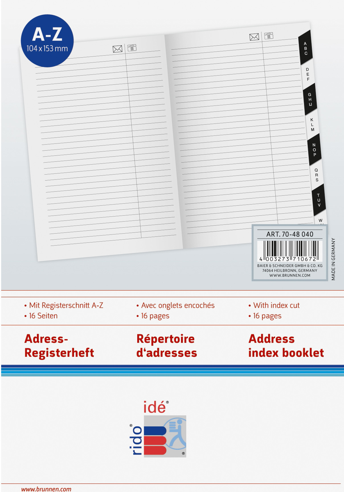 RIDOIDE Uni-Planer Reg. d'adresses 7048040.27 16 pages 10.4x15.3cm