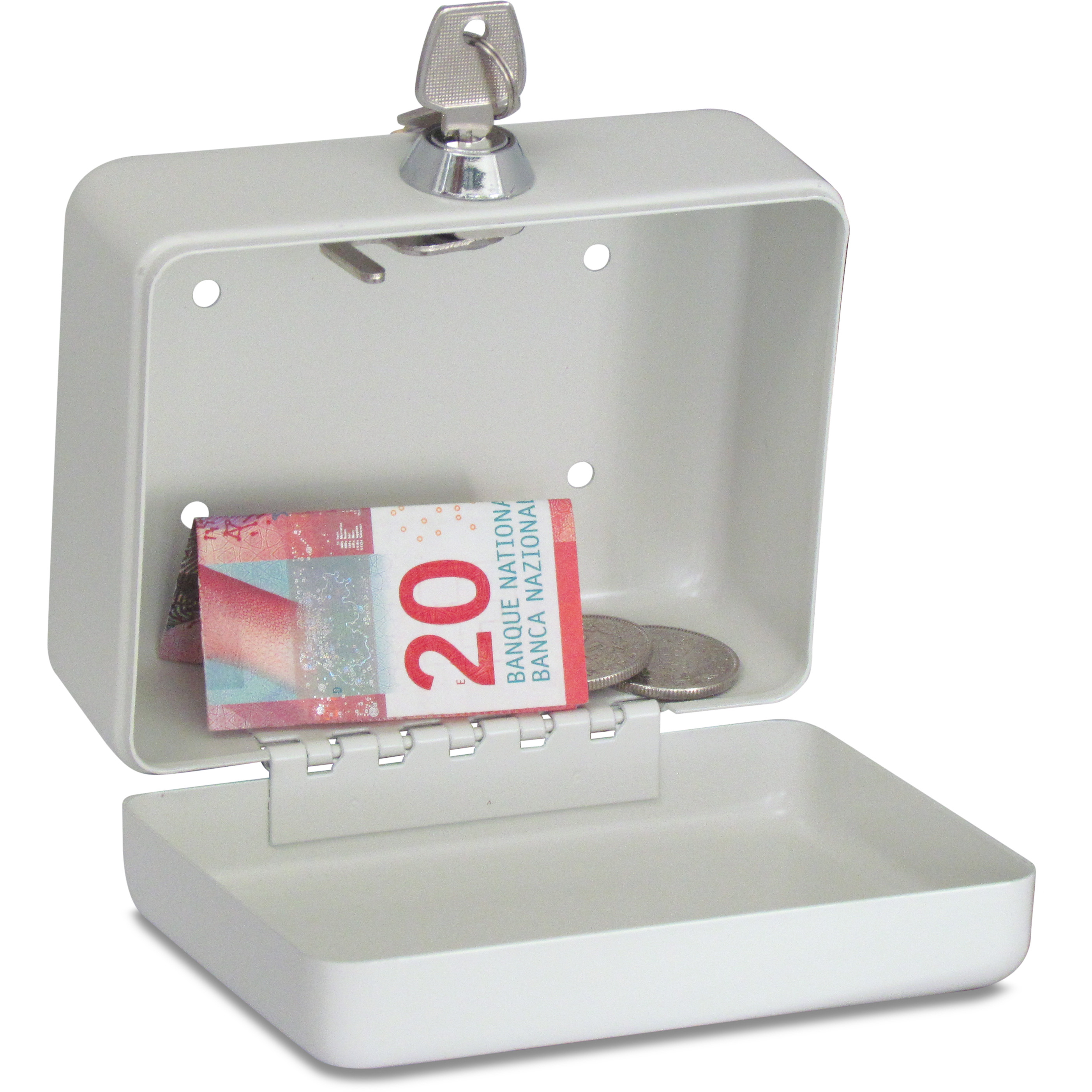 La caisse à monnaie de RIEFFEL est en tôle d'acier et dispose d'une serrure à cylindre. La fente pratique pour l'introduction de l'argent dans le couvercle assure un dépôt confortable.