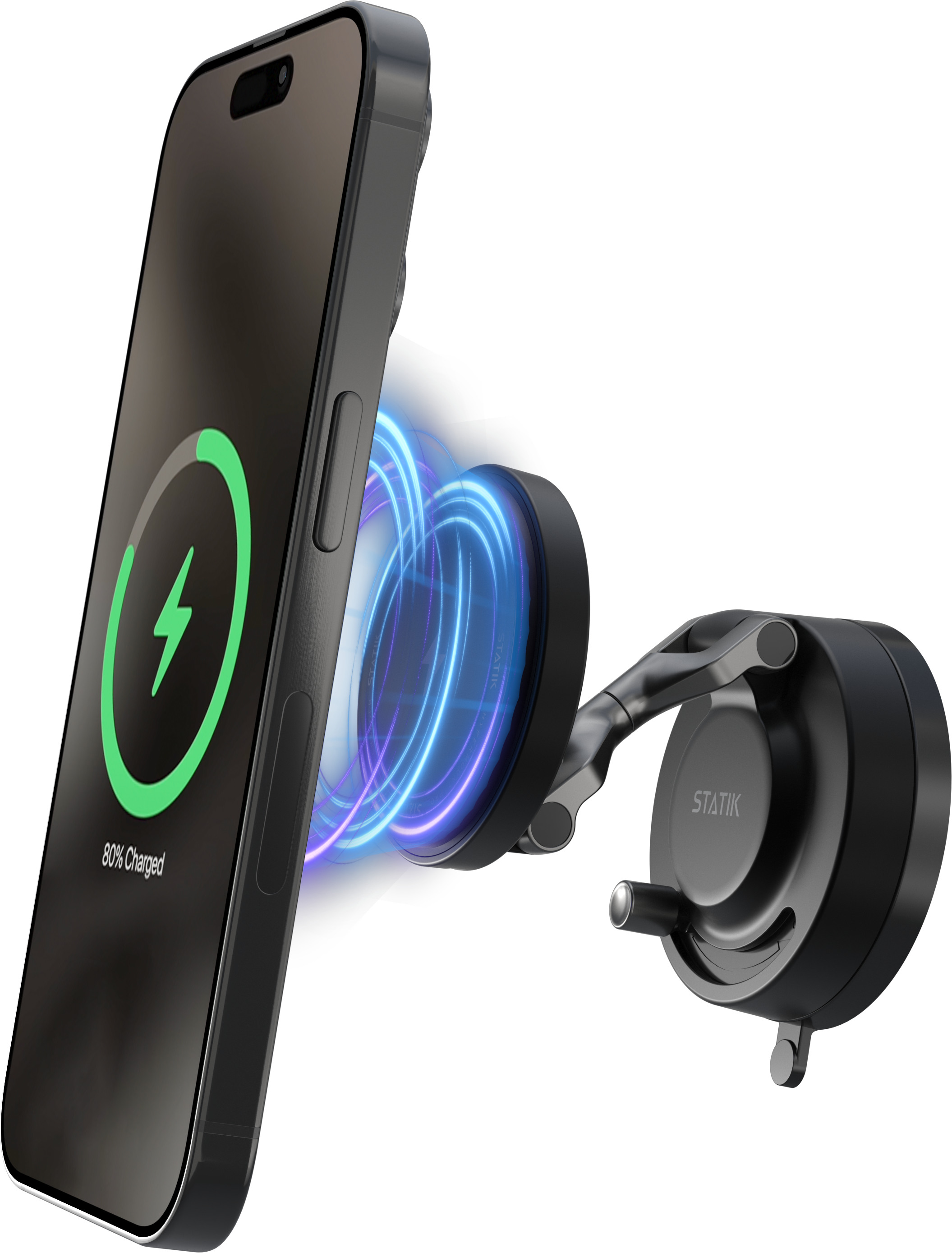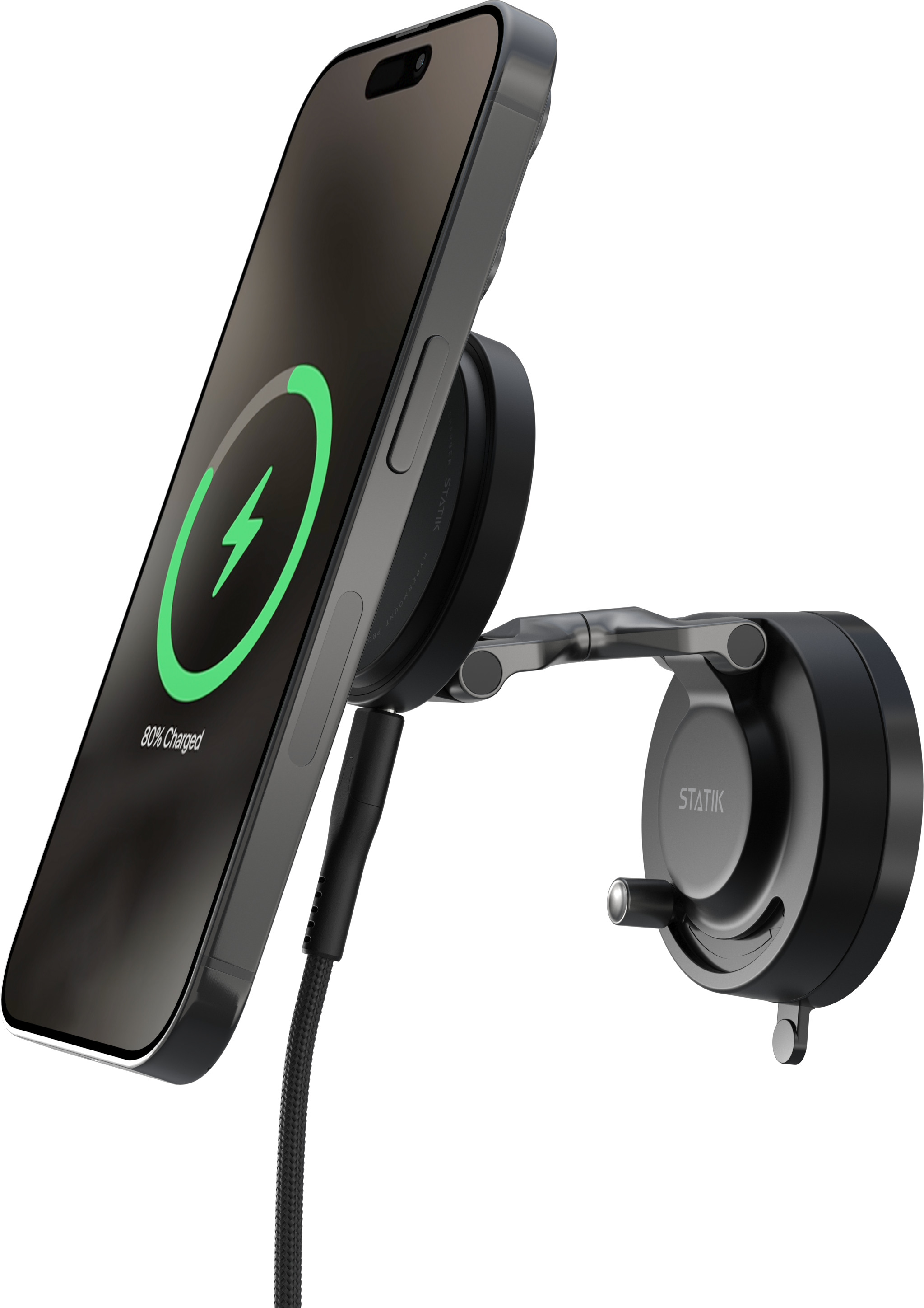 Erleben Sie absolute Freiheit mit einer magnetischen Handyhalterung, die sich an nahezu jeder Oberfläche befestigen lässt und Ihr Gerät kabellos und schnell auflädt.