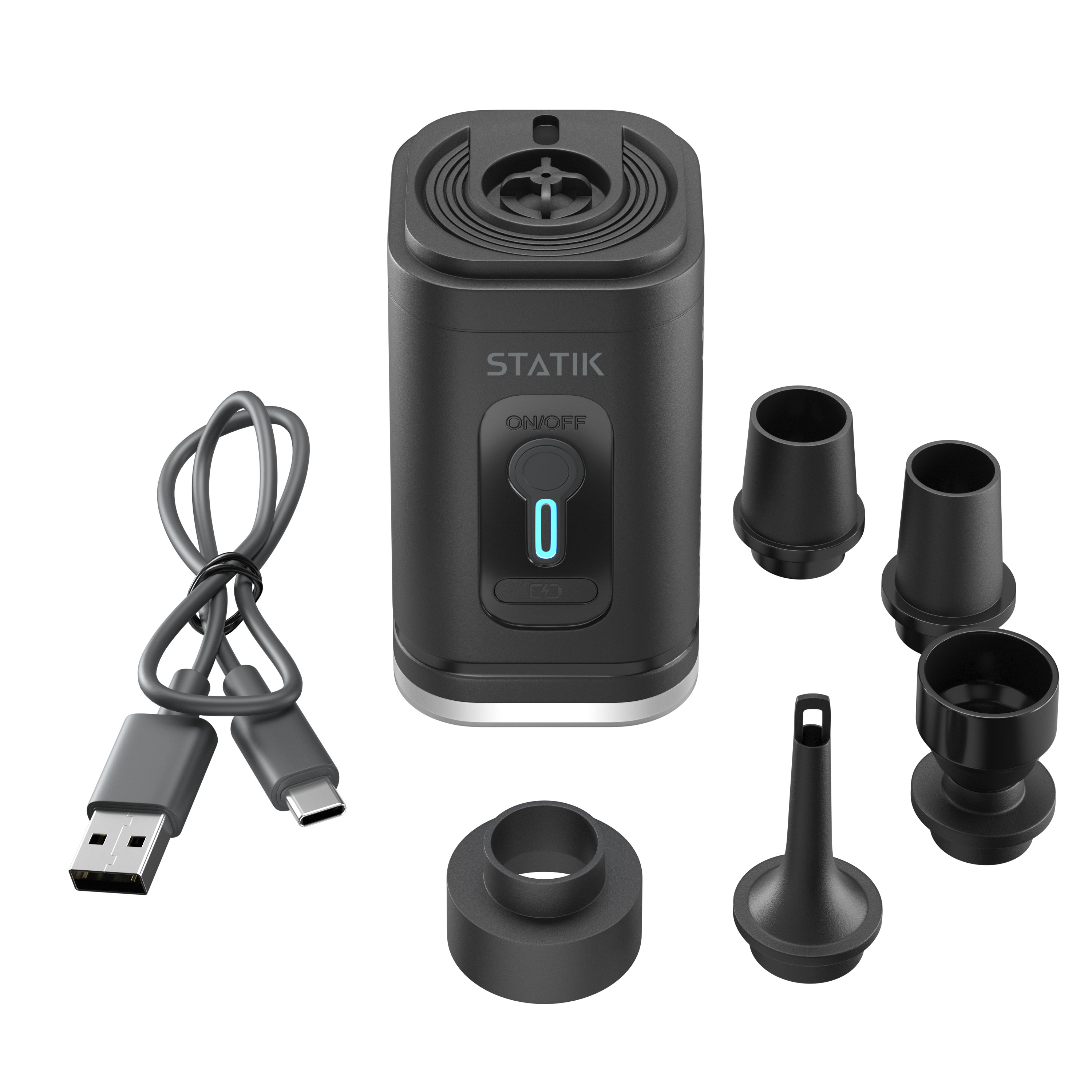 Wir mögen keine Geräte, die nur einen einzigen Zweck erfüllen. Deshalb dient die NanoPack Pumpe gleichzeitig als leistungsstarker Aufpumpe für Luftmatratzen und verfügt über eine helle LED-Unterseite, die als kompakte Reiselaterne oder Notrufsignal dient.