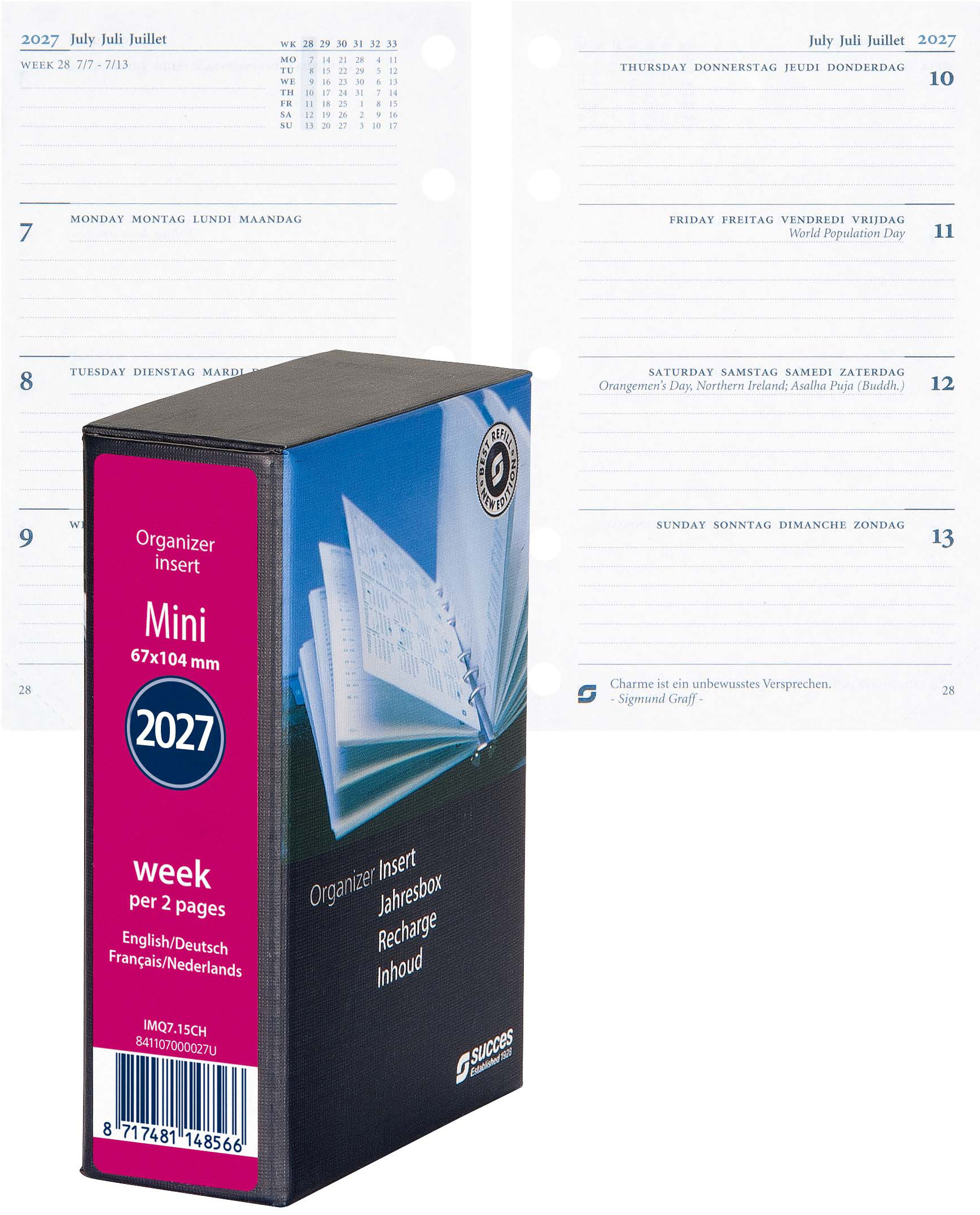 SUCCES Agenda Mini 2027 841107000027U 1S/2P recharge comp.6.7x10.4cm