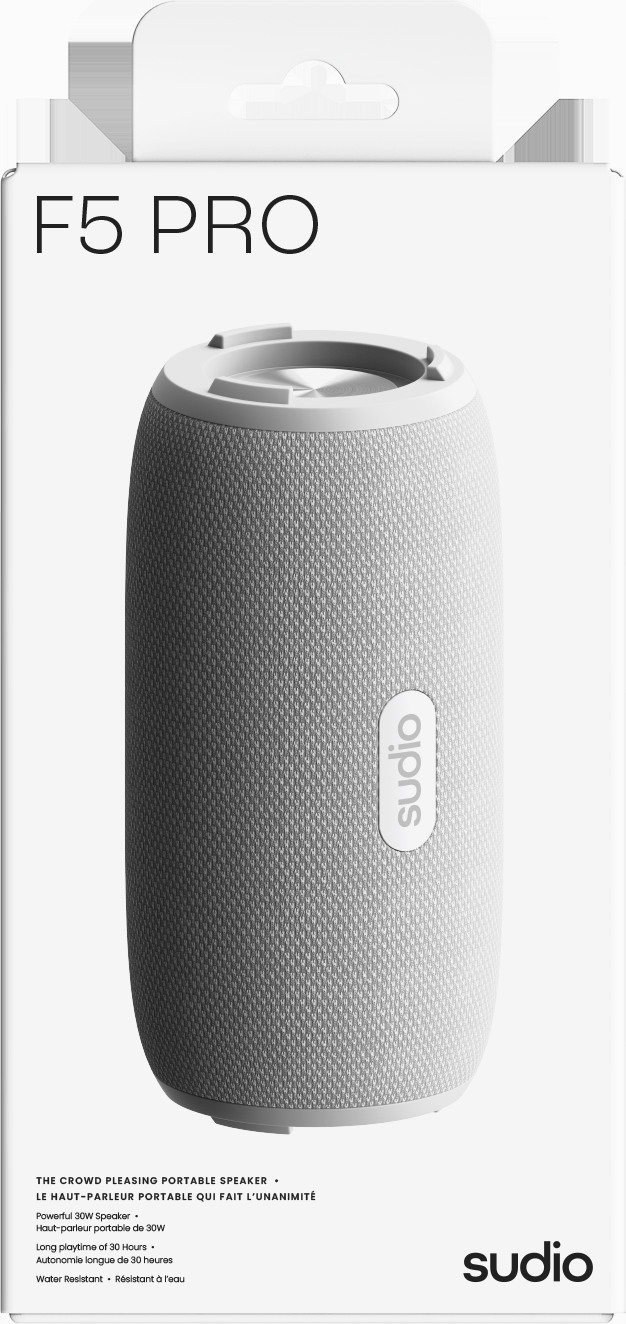 Der Sudio F5 Pro ist ein leistungsstarker, tragbarer Bluetooth-Lautsprecher, der darauf ausgelegt ist, jeden Raum mit sattem Klang zu füllen. Mit einer Ausgangsleistung von 30 Watt liefert er einen kräftigen Sound mit betonten, tiefen Bässen. Dank seiner robusten Bauweise und der IPX5-Zertifizierung ist er sowohl gegen Schweiss als auch gegen Spritzwasser geschützt, was ihn zum idealen Begleiter für unterwegs macht – egal ob drinnen oder draussen. Das Design ist schlicht und funktional: Der Lautsprecher kann sowohl stehend als auch liegend genutzt werden und besteht zudem aus recyceltem Kunststoff. Mit einer Akkulaufzeit von bis zu 30 Stunden sorgt er für langanhaltenden Musikgenuss ohne Unterbrechung.