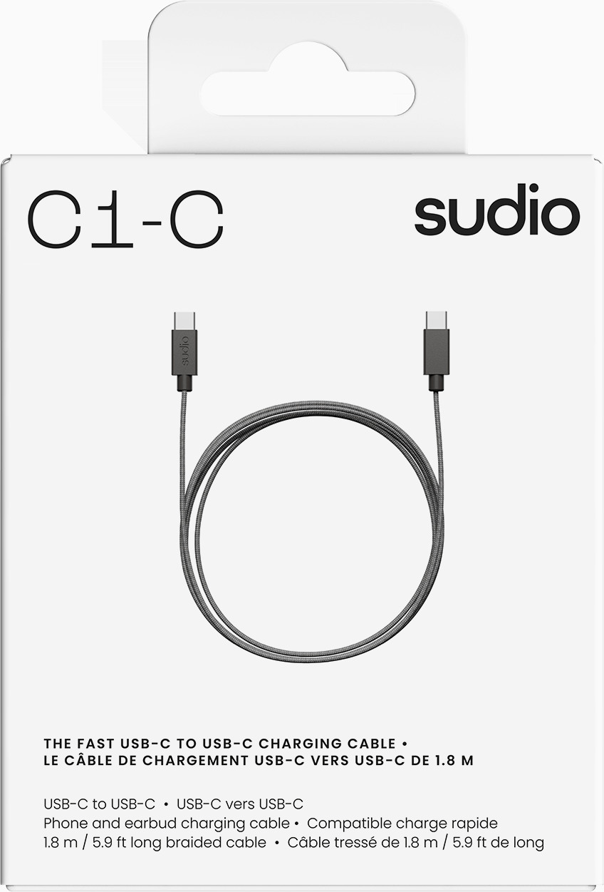 SUDIO USB-C - USB-C charging cable C1CBLK C1-C, Black, 1.8m