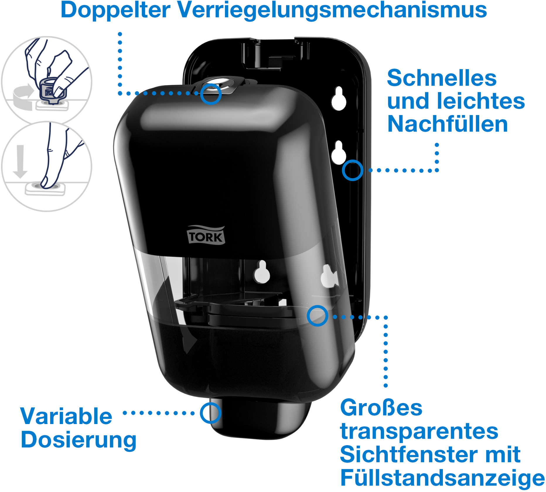 Le mini-distributeur de savon et de désinfectant pour les mains Tork est conçu pour être utilisé dans les endroits où une bonne hygiène est particulièrement importante. Il peut être utilisé avec une large gamme de savons, de désinfectants et de lotions Tork en flacons hygiéniquement scellés afin de répondre aux besoins spécifiques de votre activité. Le dosage efficace, la quantité variable de savon et la certification "Easy to use-" favorisent une bonne hygiène des mains pour tous les utilisateurs*. Impressionnez vos clients avec le design fonctionnel et élégant de notre distributeur de savon et de désinfectant pour les mains le plus polyvalent.