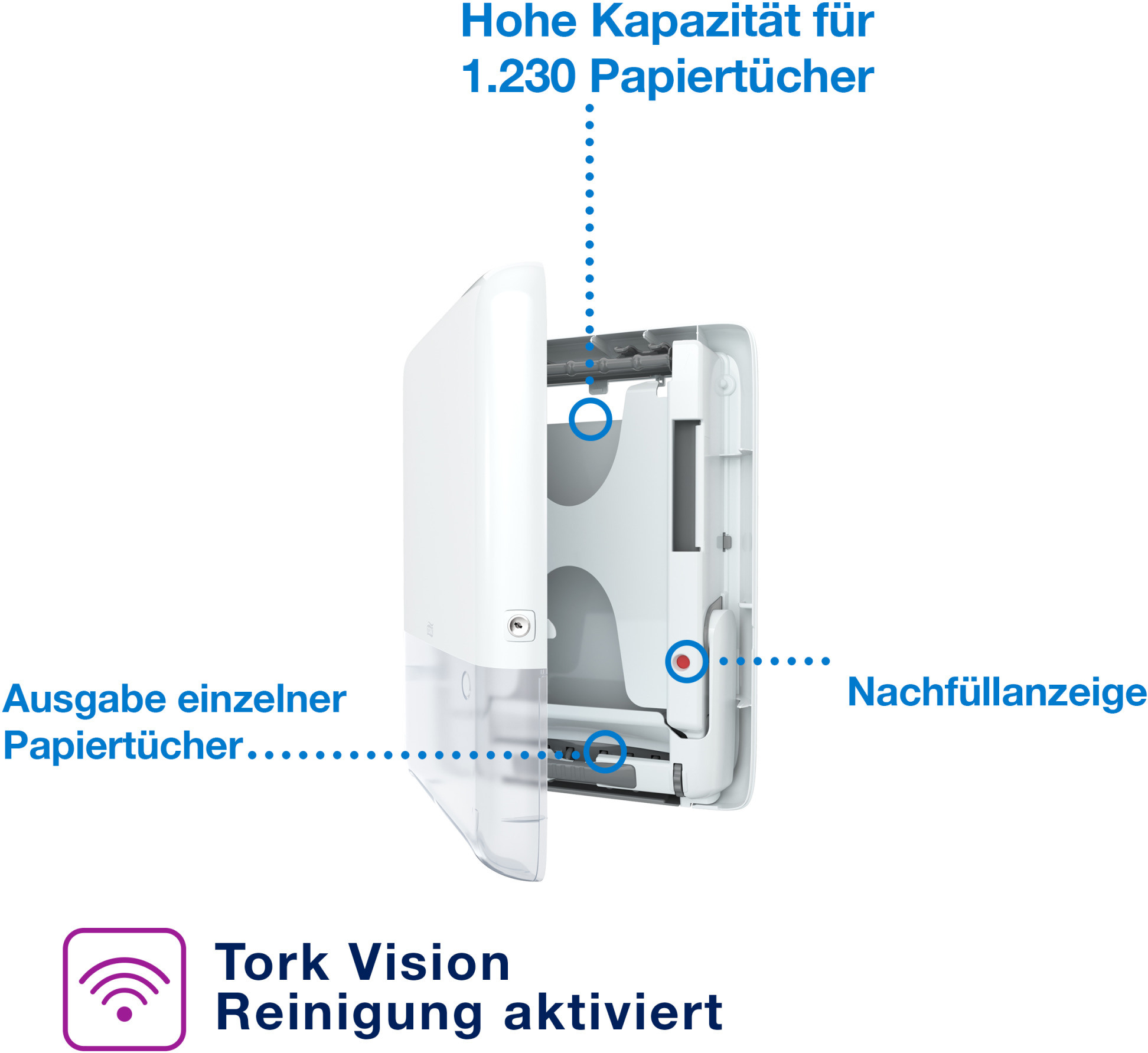 Tork PeakServe : la toute dernière innovation pour les sanitaires très fréquentés, où le personnel d'entretien a plus de travail de nettoyage et doit veiller à ce que le passage des visiteurs se fasse sans problème. Compatible avec le système Tork PeakServe pour essuie-mains en continu. Ce système a une très grande capacité de 1.230 essuie-mains qui sont distribués rapidement et sans interruption, permettant ainsi un passage rapide et fluide des visiteurs. Les recharges comprimées sont rapides à mettre en place, peuvent être remplies à tout moment et sont faciles et pratiques à transporter et à stocker - pour que votre personnel puisse se concentrer sur le nettoyage.