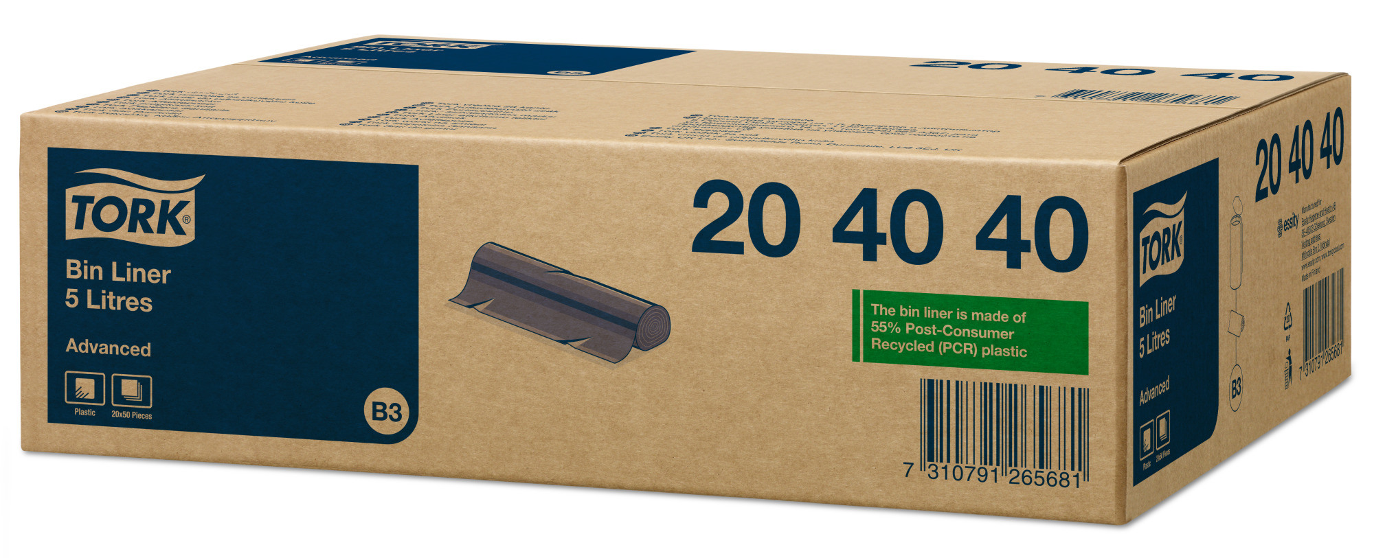 Mettez des poubelles à disposition partout, pour que tout soit bien rangé et que l'hygiène soit maximale, grâce à nos sacs poubelles Tork de 5 litres. Vos employés peuvent vider rapidement les poubelles et remplir rapidement les conteneurs de stockage grâce à nos roulettes faciles à utiliser, ce qui garantit des opérations de maintenance et de nettoyage sans problème. La solution de fermeture renforcée par pliage du fond réduit également le risque de déchirures et de fuites lors de la manipulation des déchets. En choisissant un sac poubelle fabriqué à 55 % à partir de matériaux recyclés, vous optez également pour la durabilité.