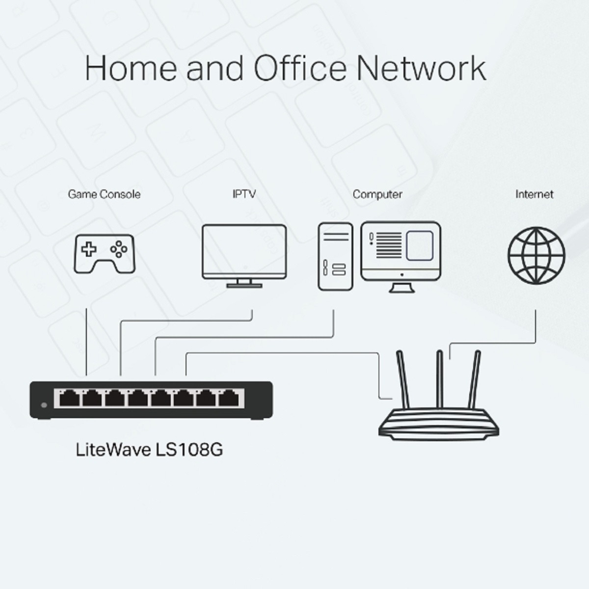 Les switches non administrables de série TP-Link LiteWave offrent un moyen simple et abordable d’étendre votre réseau câblé. Ils sont faciles à utiliser et fiables. Avec ces switches plug-and-play, vous pouvez étendre instantanément vos connexions réseau à plusieurs périphériques. Tous les ports prennent en charge Auto-MDI / MDIX, vous n'avez pas à vous soucier du type de câble à utiliser. Les composants du LS108G sont protégés par un boîtier en métal de haute qualité afin de garantir une longue durée de vie à ce produit. Après avoir passé de nombreux tests de fiabilité, le LS105G offre des performances sur lesquelles vous pouvez compter. Sa taille compacte le rend idéal pour le déploiement sur des ordinateurs de bureau ou des bancs de travail.