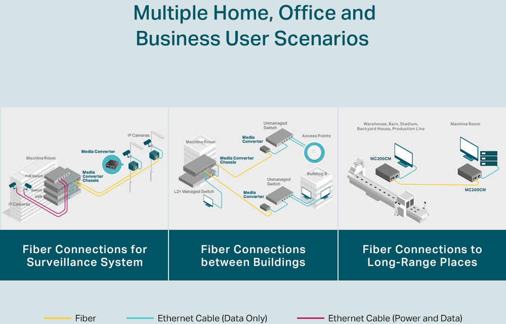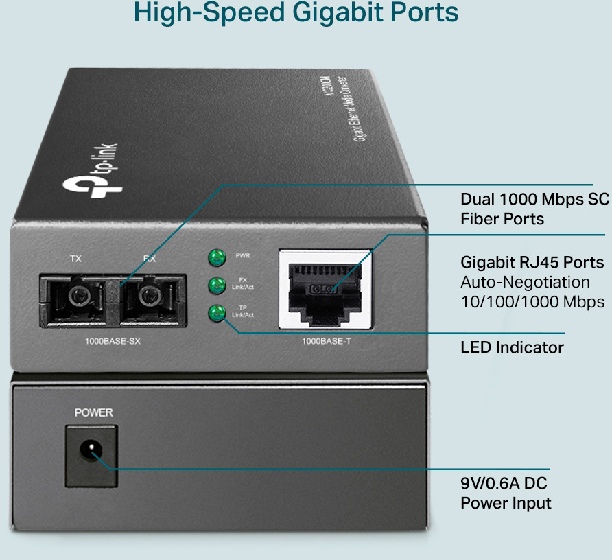 Le MC200CM est un convertisseur de média conçu pour convertir des supports fibre 1000BASE-SX en supports cuivre 1000Base-T ou inversement. Le MC200CM a été conçu conformément à la norme 1000Base-T (IEEE802.3ab) et à la norme 1000Base-SX (IEEE802.3z) et est destiné à être utilisé avec un câble à fibre optique multimode et un connecteur SC. Le MC200CM prend en charge la spécification laser à ondes courtes (SX) à un taux de transmission correspondant à la totalité de la bande passante. Il fonctionne à 850 nm aussi bien pour l'émission que pour la réception de données. Les autres caractéristiques du module sont les suivantes : possibilité d'utiliser l'appareil en tant qu'appareil autonome (aucun boîtier n'est nécessaire) ou avec le boîtier système 19 pouces de TP-LINK, Auto-MDI/MDIX pour le port d'émission et LED d'état sur le panneau avant.