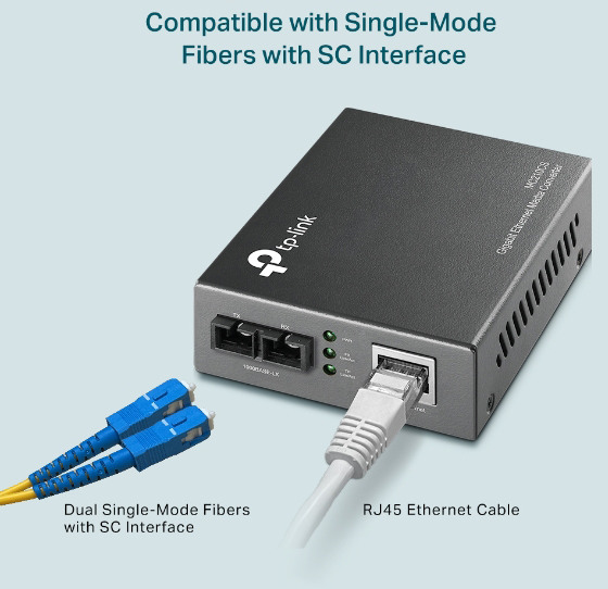 Le MC210CS est un convertisseur de média conçu pour convertir des supports fibre 1000BASE-LX/LH en supports cuivre 1000Base-T ou inversement. Le MC210CS a été conçu conformément à la norme 1000Base-T (IEEE802.3ab) et à la norme 1000Base-LX/LH (IEEE802.3z) et est destiné à être utilisé avec un câble à fibre optique monomode et le connecteur SC. Le MC210CS prend en charge la spécification laser à ondes longues (LX) à un taux de transmission correspondant à la totalité de la bande passante. Il fonctionne à 1310 nm aussi bien pour l'émission que pour la réception de données. Les autres caractéristiques du module sont les suivantes : possibilité d'utiliser l'appareil en tant qu'appareil autonome (aucun boîtier n'est nécessaire) ou avec le boîtier système 19 pouces de TP-LINK, Auto-MDI/MDIX pour le port d'émission et LED d'état sur le panneau avant.