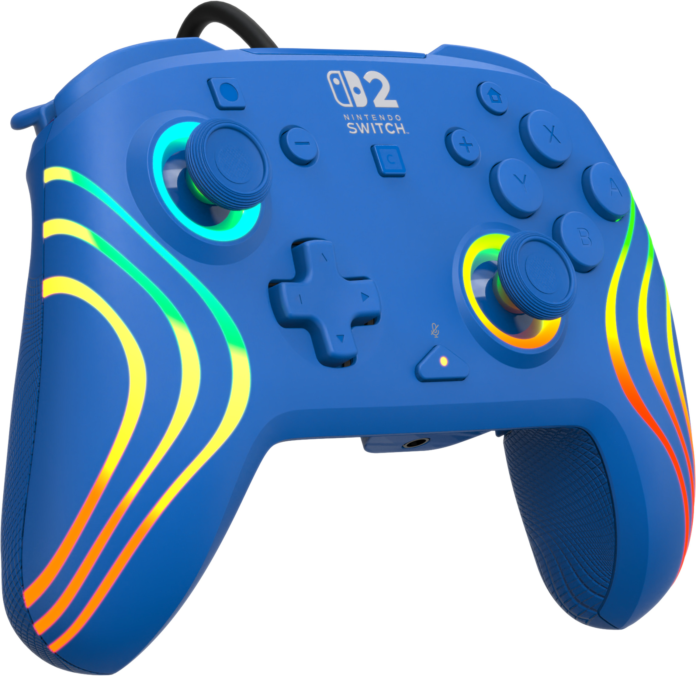 Rends ton expérience de jeu encore plus cool avec la manette de jeu filaire Afterglow Wave RGB pour Nintendo Switch™ 2. Cette manette est également compatible avec la Nintendo Switch™ et la Nintendo Switch™ - modèle OLED. Avec huit zones d'éclairage RVB personnalisables et quatre modes prédéfinis, tu peux facilement adapter l'éclairage de la manette à ton style ou à ton humeur. Les manettes à effet Hall intégrées offrent une précision, une réactivité et une résistance à long terme améliorées, tandis que la prise casque intégrée de 3,5 mm et les commandes audio te garantissent une immersion totale. La touche C, placée de manière pratique, te permet d'accéder rapidement aux fonctions GameChat. Domine chaque match grâce aux touches à assignation rapide à l'arrière, aux poignées texturées et à une connexion câblée sécurisée pour un contrôle ultra-réactif. Montre ton vrai visage et un nouveau style avec la manette de jeu sans fil Afterglow Wave RGB, sous licence officielle de Nintendo®.