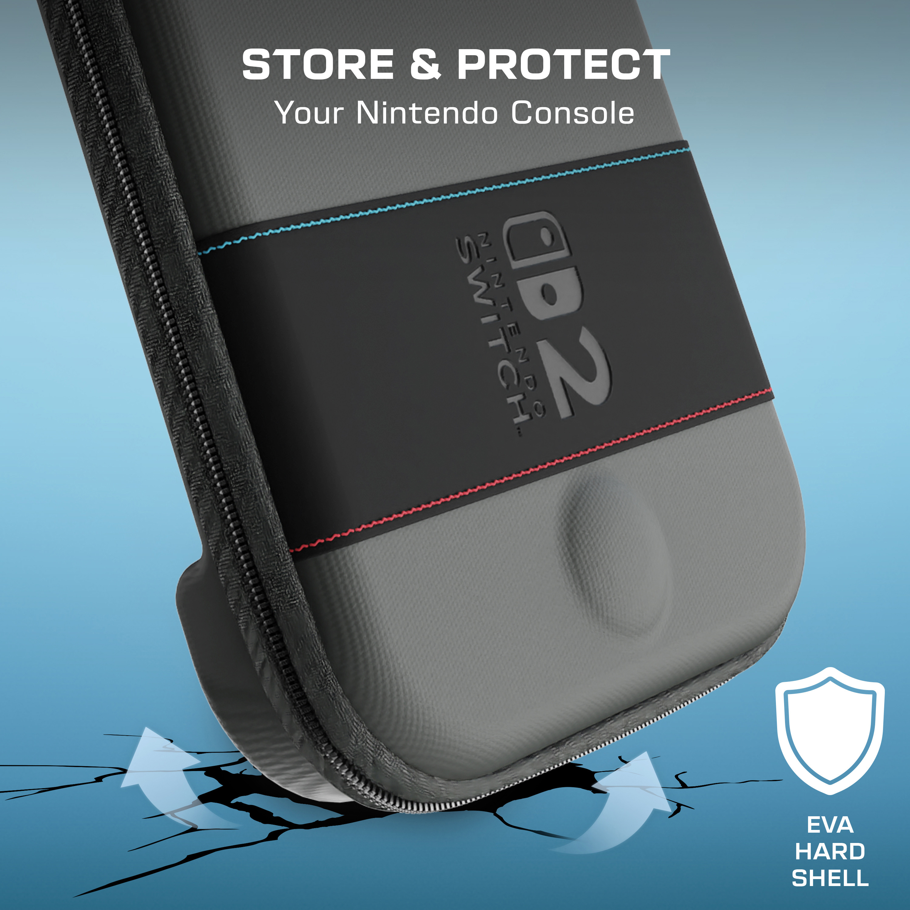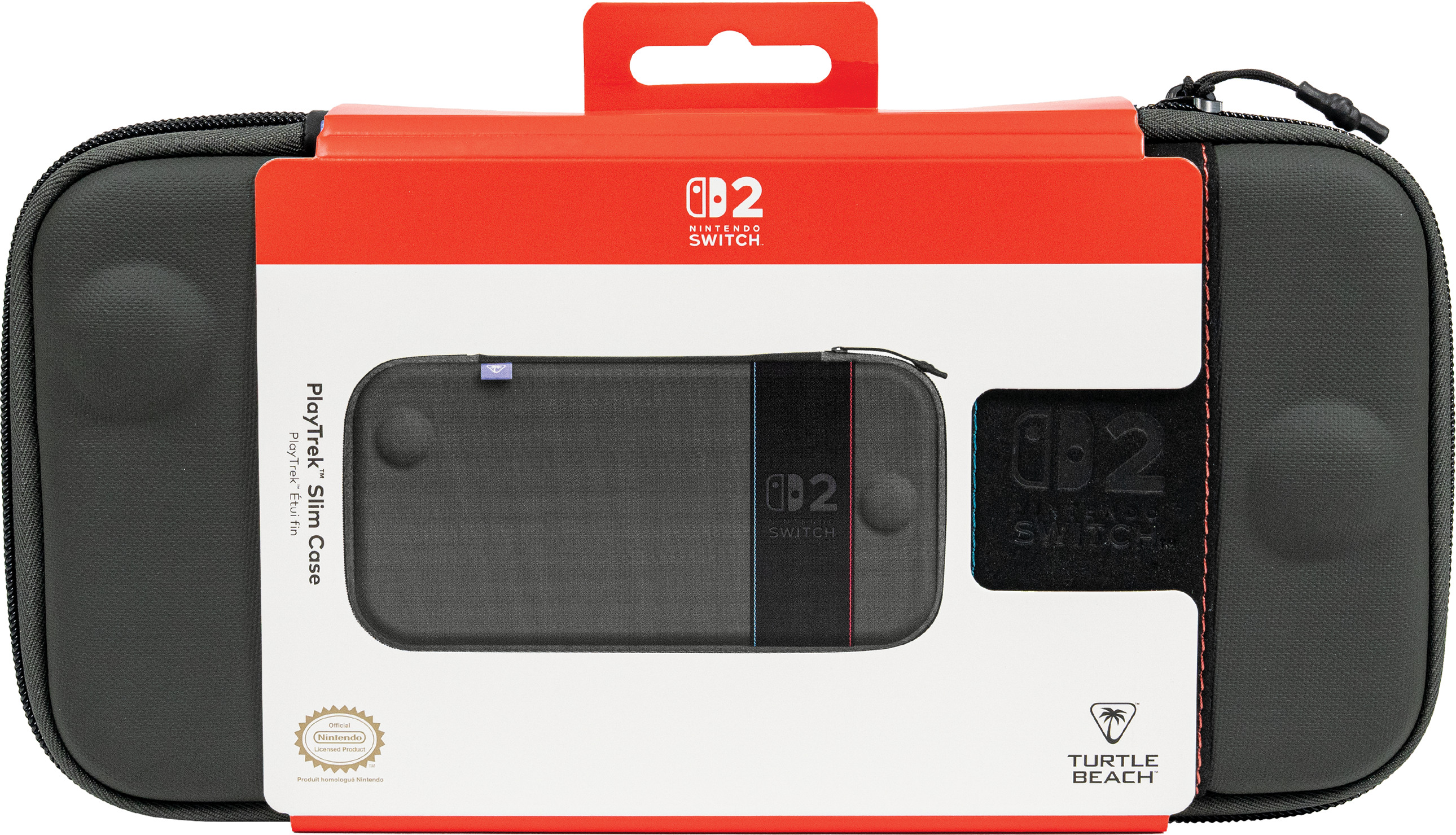 L'étui fin PlayTrek™ de Turtle Beach® offre une protection quotidienne à ta Nintendo Switch™ 2 dans un élégant Charcoal Black prêt à voyager. Avec une coque en EVA très résistante et un extérieur en polyester recouvert de TPU, cet étui est conçu pour résister aux chocs et aux rayures lors des déplacements. À l'intérieur, un bouclier rembourré protège ton écran et dispose d'un espace de rangement intégré pour les cartes à jouer, afin que ta collection soit toujours à portée de main. L'étui PlayTrek™ fin se glisse facilement dans ton sac et est parfait pour aller au travail, prendre l'avion ou toute autre aventure. Officiellement sous licence Nintendo®, c'est la solution intelligente pour voyager léger tout en protégeant ta console.