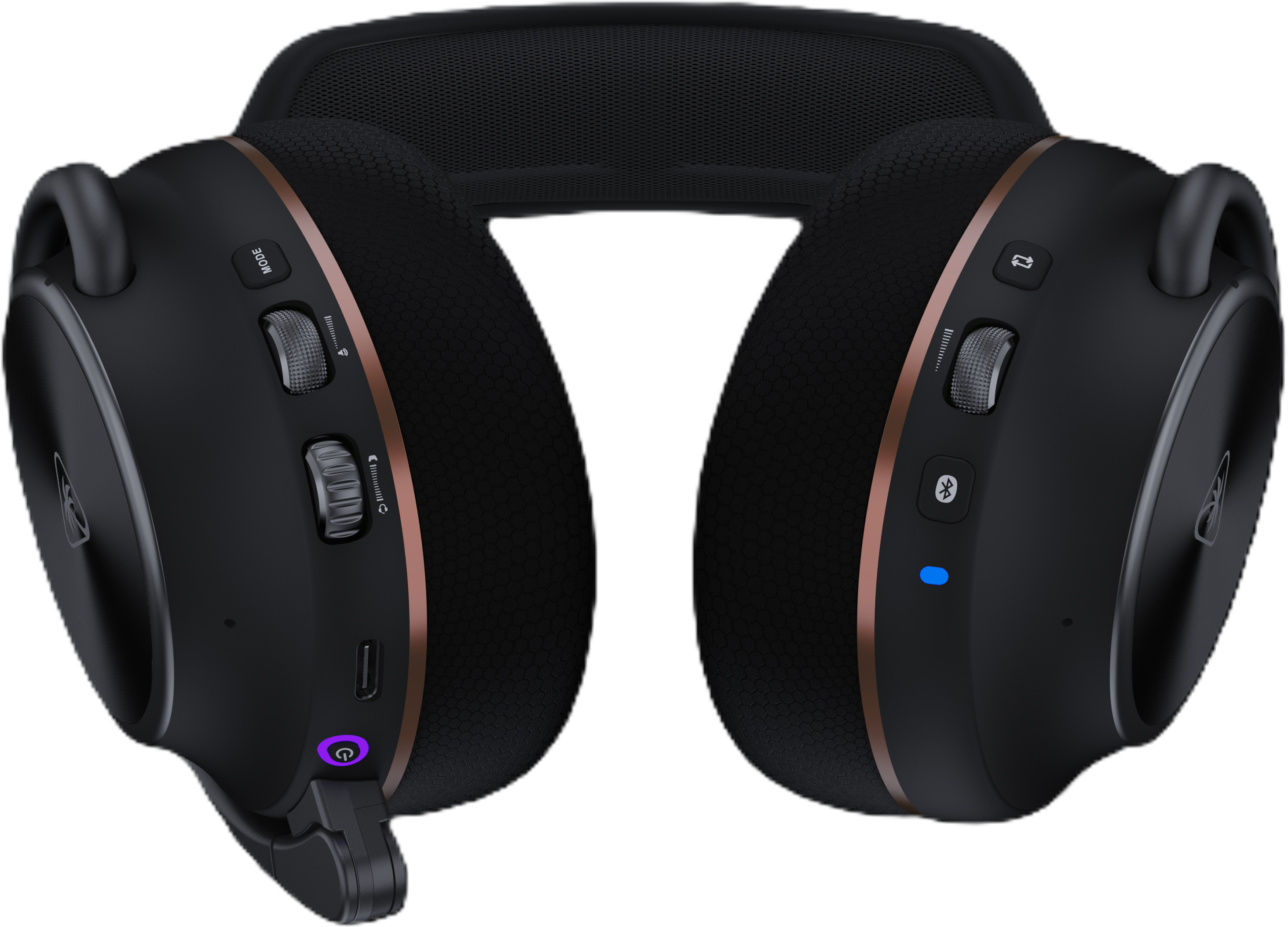 - Connecte-toi simultanément à ton PC ou à ta console et à ton appareil mobile via le WLAN 2,4 GHz et Bluetooth®. Discute sur Discord, prends des appels ou diffuse de la musique depuis ton téléphone portable tout en écoutant le son du jeu. Des commandes de volume séparées te permettent de mixer le tout en toute simplicité.