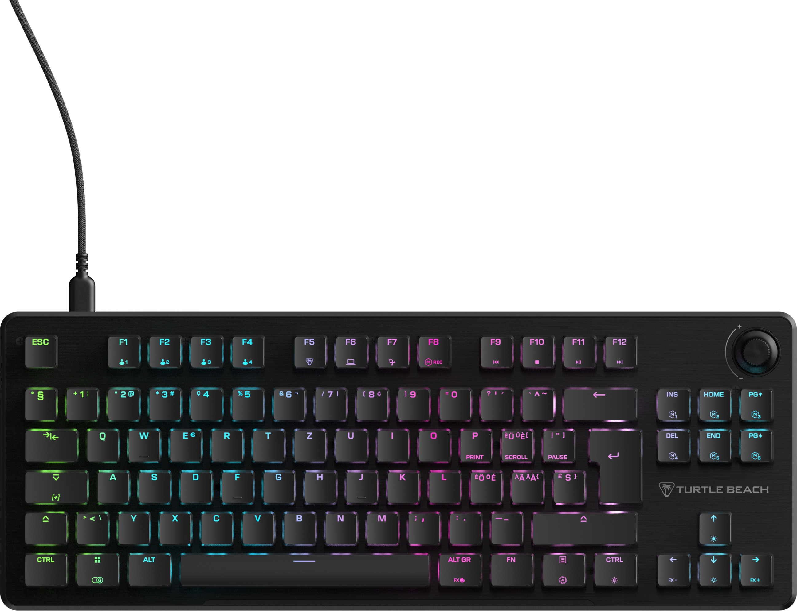 Le Turtle Beach Vulcan™ II TKL est un clavier de jeu mécanique sans pavé numérique qui libère de l'espace sur le bureau tout en offrant des performances de jeu de premier ordre pour les longues sessions de jeu. Avec ses commutateurs TITAN HS hot-swap déjà lubrifiés, qui rendent l'entretien vraiment facile, sa mousse antibruit et sa face supérieure en aluminium brossé, il assure un contrôle silencieux et précis. Personnalise chaque capuchon de touche comme tu le souhaites et personnalise chaque touche avec un éclairage RGB individuel et un éclairage synchronisé AIMO™ via Swarm™ II, tout en jouant en toute sécurité avec ReacTap™ SOCD, l'anti-ghosting avancé et EASY-SHIFT[+]™. Le câble USB-C amovible sur le côté gauche et les profils intégrés font de ce clavier un compagnon durable.