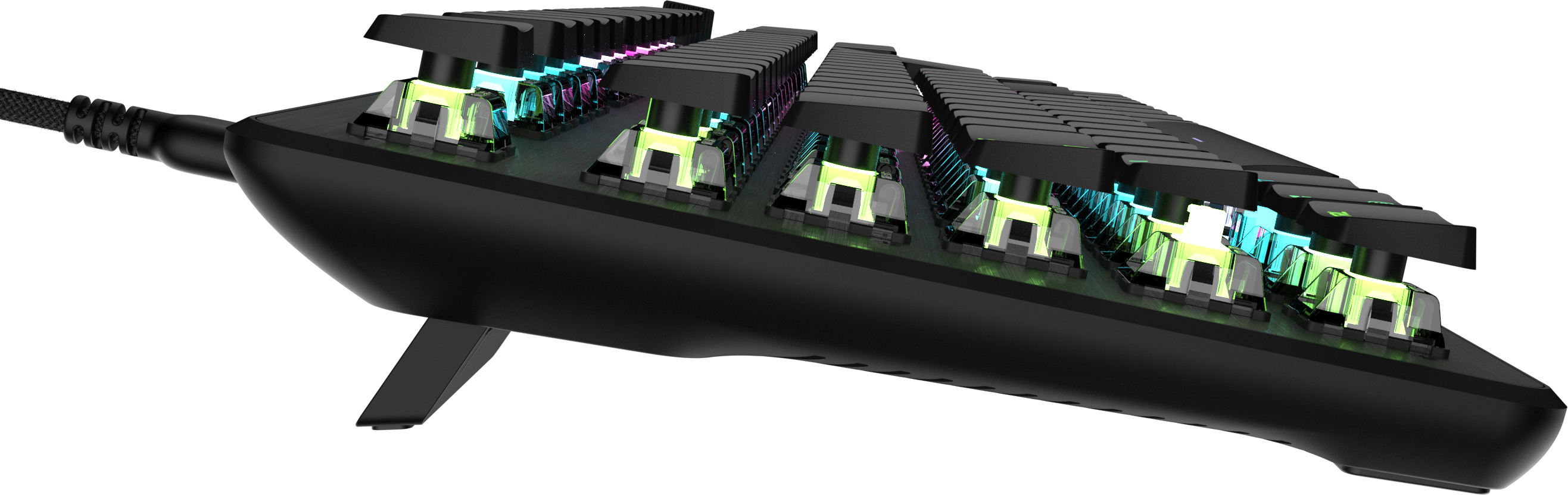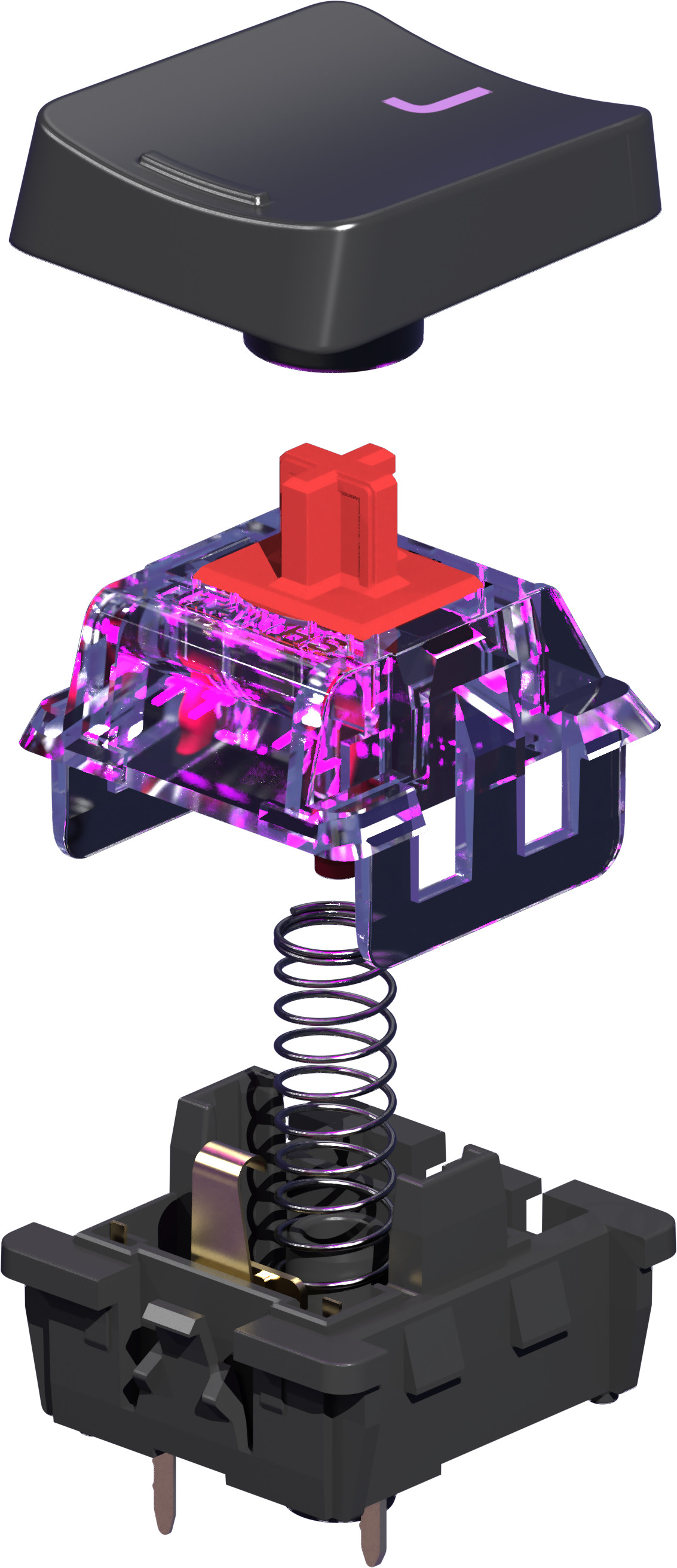 - Les nouveaux interrupteurs TITAN HS (remplaçables à chaud) sont pré-lubrifiés et conçus pour 50 millions de frappes. Ils offrent un actionnement linéaire doux de 1,8 mm, parfait pour des réactions rapides dans le jeu et une superbe sensation de frappe.