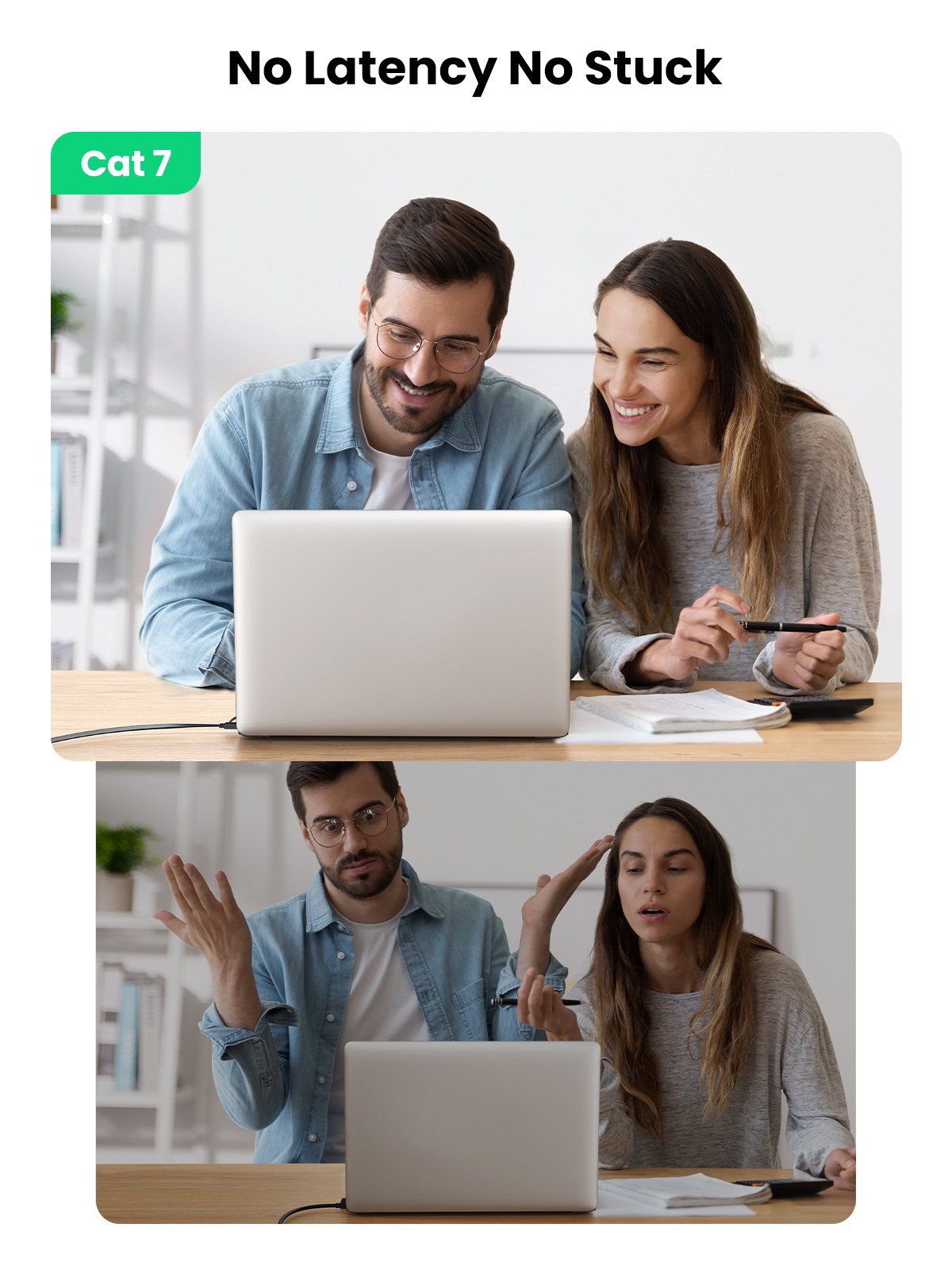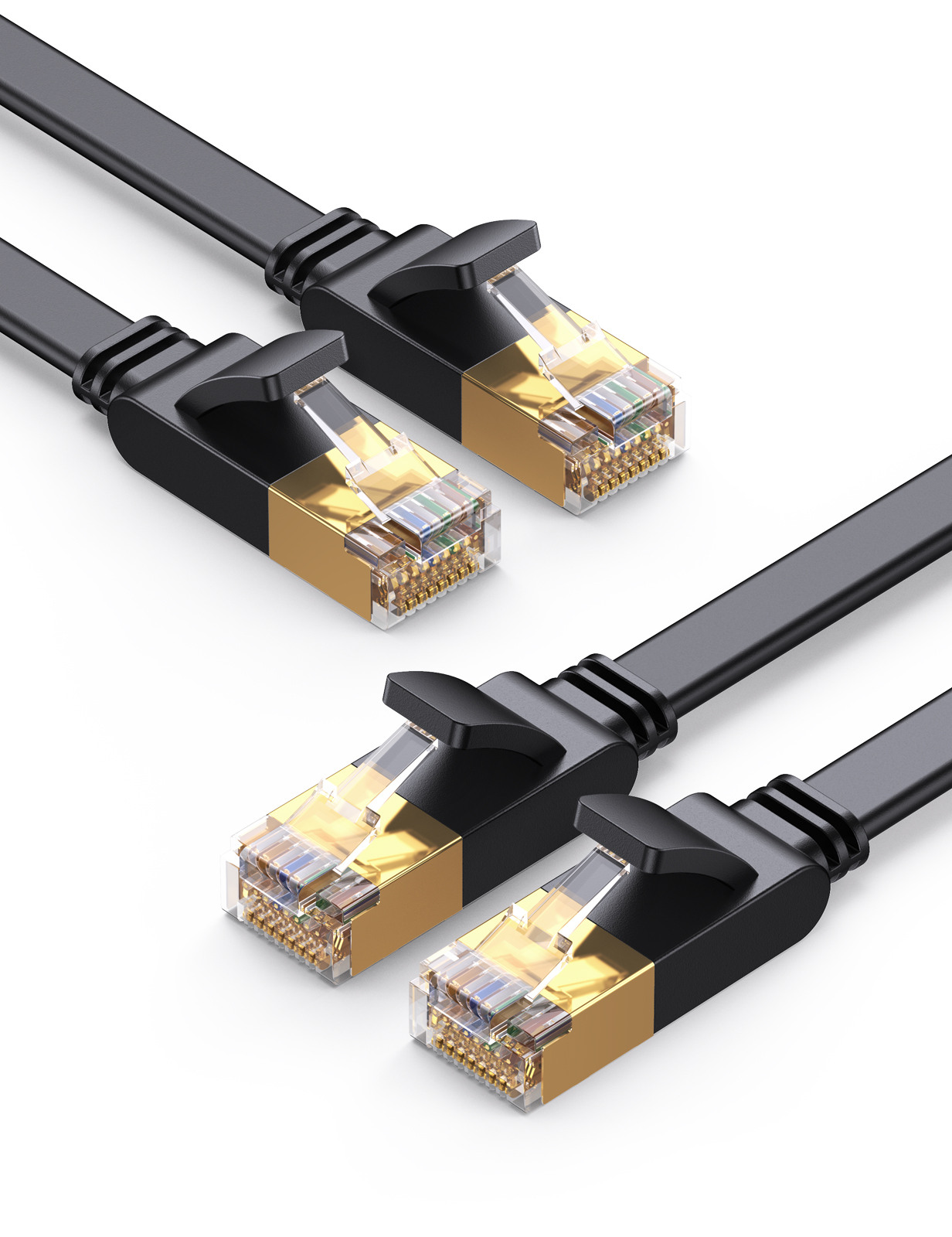 Les câbles Internet CAT7 prennent en charge des largeurs de bande allant jusqu'à 600 MHz et offrent une vitesse de réseau maximale de 10 Gbit/s pour une navigation rapide sur Internet, le streaming de vidéos, de musique et d'autres données. Les câbles patch CAT7 relient toutes les cibles matérielles d'un réseau local (LAN) Gigabit à haut débit, comme les ordinateurs, les serveurs, les imprimantes, les routeurs, les commutateurs, les lecteurs multimédias en réseau, les systèmes NAS et les téléphones VoIP. Les câbles Internet plats sont extrêmement flexibles et beaucoup plus faciles à installer, par exemple sous les tapis, les portes, les tiroirs ou le long des murs. Le design plat évite les enchevêtrements de câbles et permet de gagner de la place ; les connecteurs plaqués or 24 carats sont particulièrement durables.