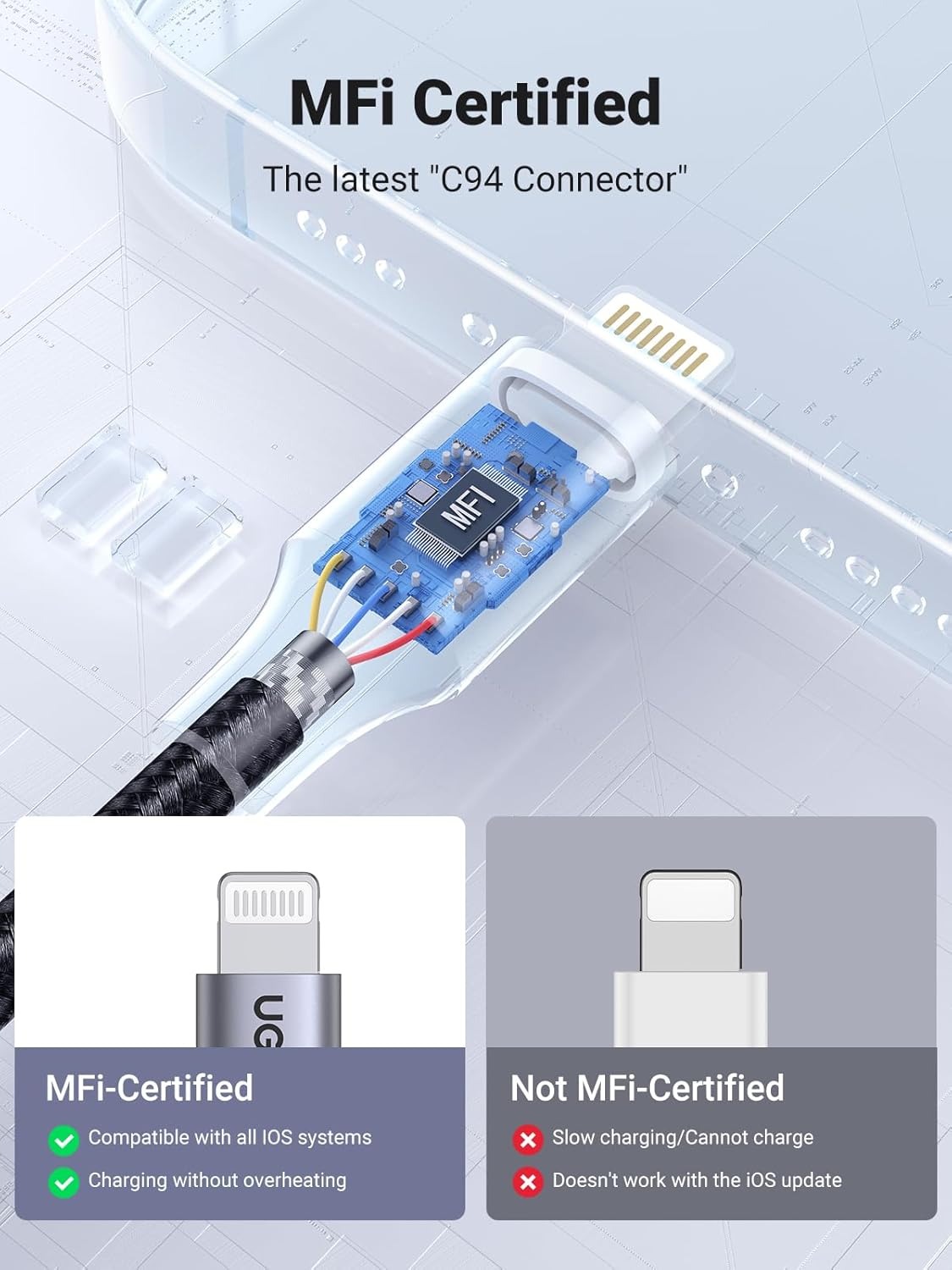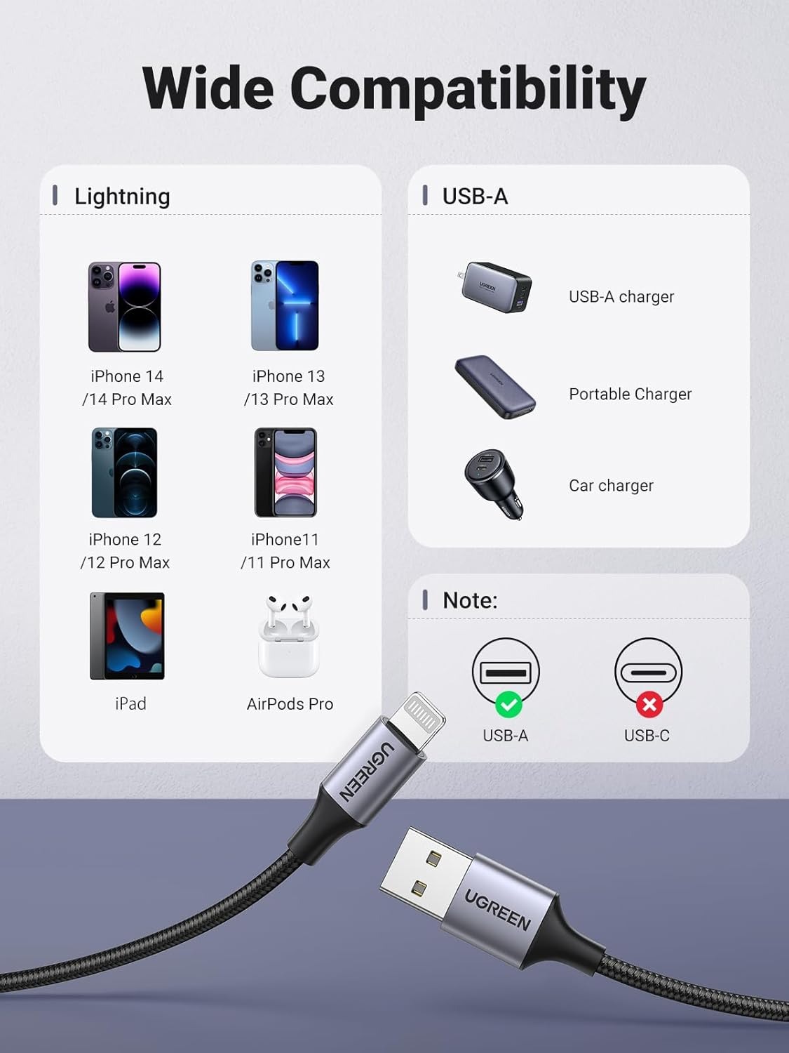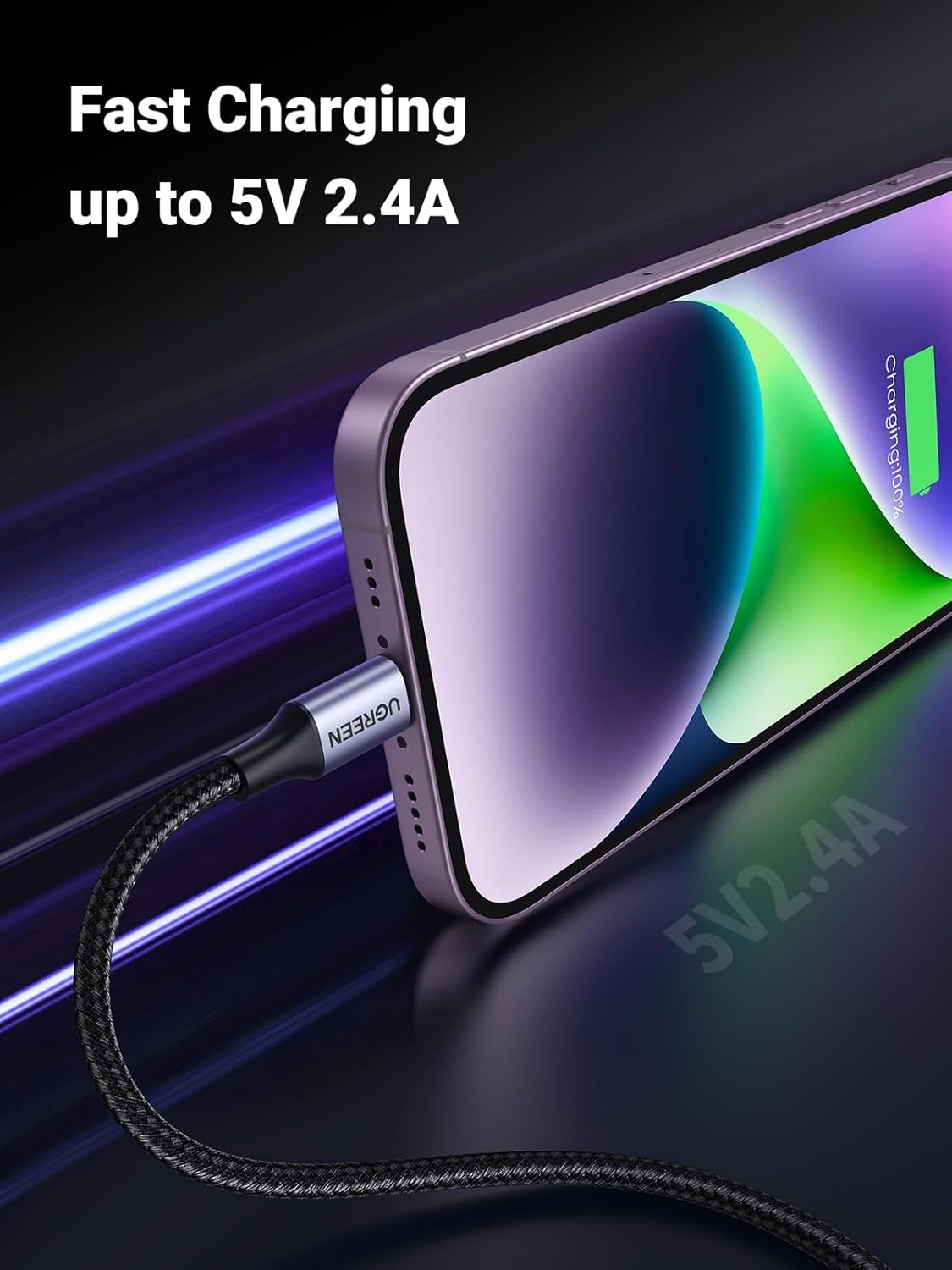 Charge rapide 2,4 A : fournit jusqu'à 2,4 A de charge rapide à votre iPhone, iPad ou iPod, assurant ainsi une alimentation efficace et stable au quotidien, sans surchauffe ni perte de puissance.