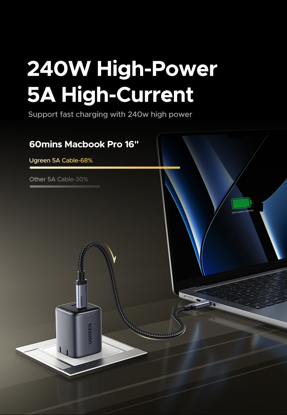 240 W Charge super rapide : Rechargez vos appareils avec l'excellent PD 3.1 de 240 W et rechargez un MacBook Pro 16" à 56 % en 30 minutes. Rétrocompatible avec les appareils 140 W/100 W/65 W pour des performances à l'épreuve du temps pour les ordinateurs portables, les smartphones et les accessoires.