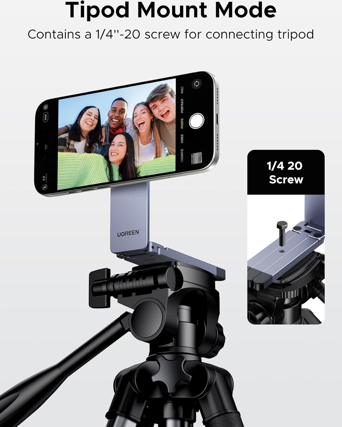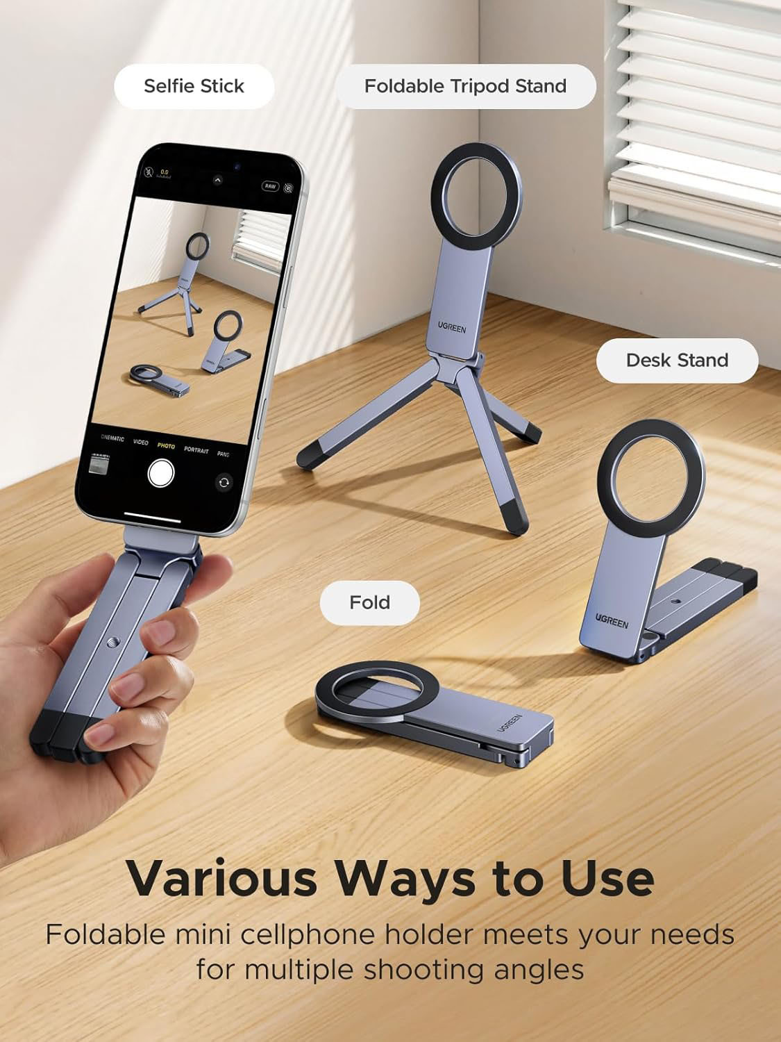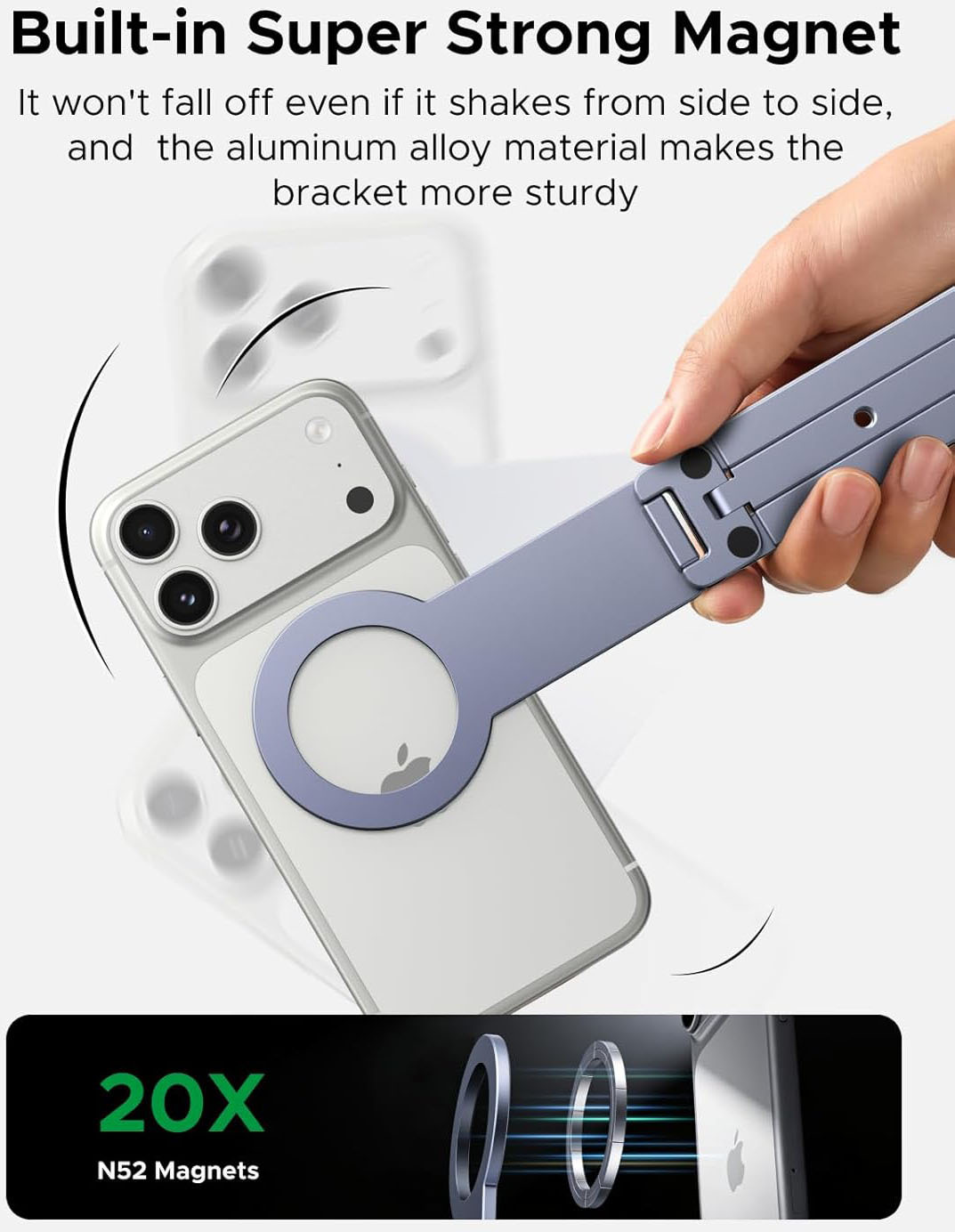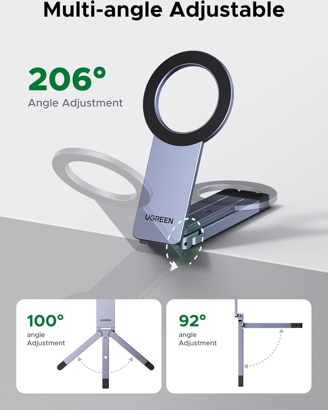 Aimants N52 super puissants : le support pour téléphone portable d'UGREEN est doté de 20 aimants N52 qui lui confèrent une énorme force magnétique et un maintien sûr. Il s'enlève sans effort d'une seule main et est compatible avec les smartphones de différentes marques (en combinaison avec des anneaux magnétiques ou des étuis MagSafe).