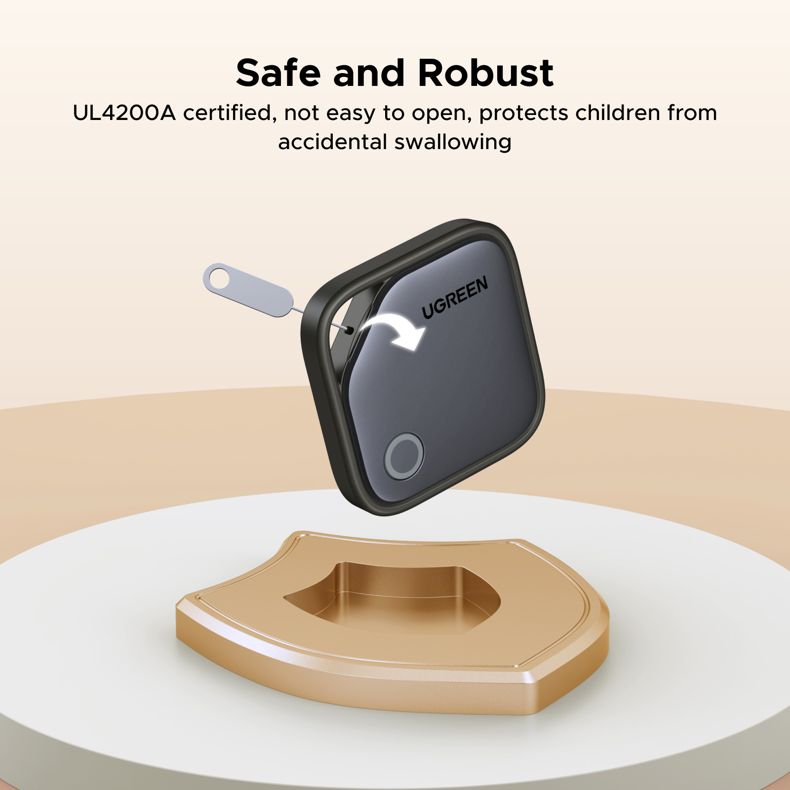 - Sûr, robuste et facile à fixer : Grâce à un œillet intégré, le Finder UGREEN se fixe rapidement aux clés, aux sacs à dos ou aux bagages et peut ainsi être utilisé de manière polyvalente. Des autocollants pour l'identification de chaque tag sont inclus dans la livraison. La certification UL4200A et le design à l'épreuve des enfants garantissent que le couvercle reste bien fermé et que les enfants ne peuvent pas atteindre et avaler la pile bouton.