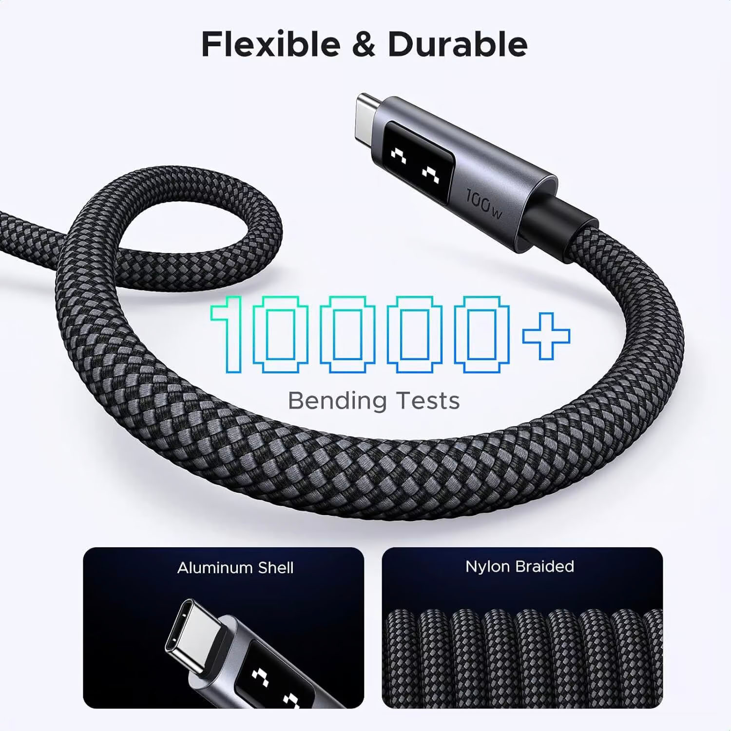 Charge rapide & synchronisation : Avec une puissance de sortie allant jusqu'à 20 V/5 A, le câble de charge USB-C UGREEN 100W charge vos appareils à une vitesse impressionnante. Un MacBook Pro 16" atteint ainsi jusqu'à 42% de charge de la batterie en seulement 30 minutes. De plus, il prend en charge les transferts de fichiers à 480 Mbps ; les fichiers de 1 Go peuvent être synchronisés en 30 secondes.